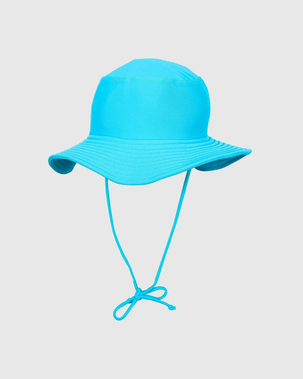 The Building Blocks Lycra Bucket Hat by Aqua Blu Kids is perfect for sunny days spent by the water.