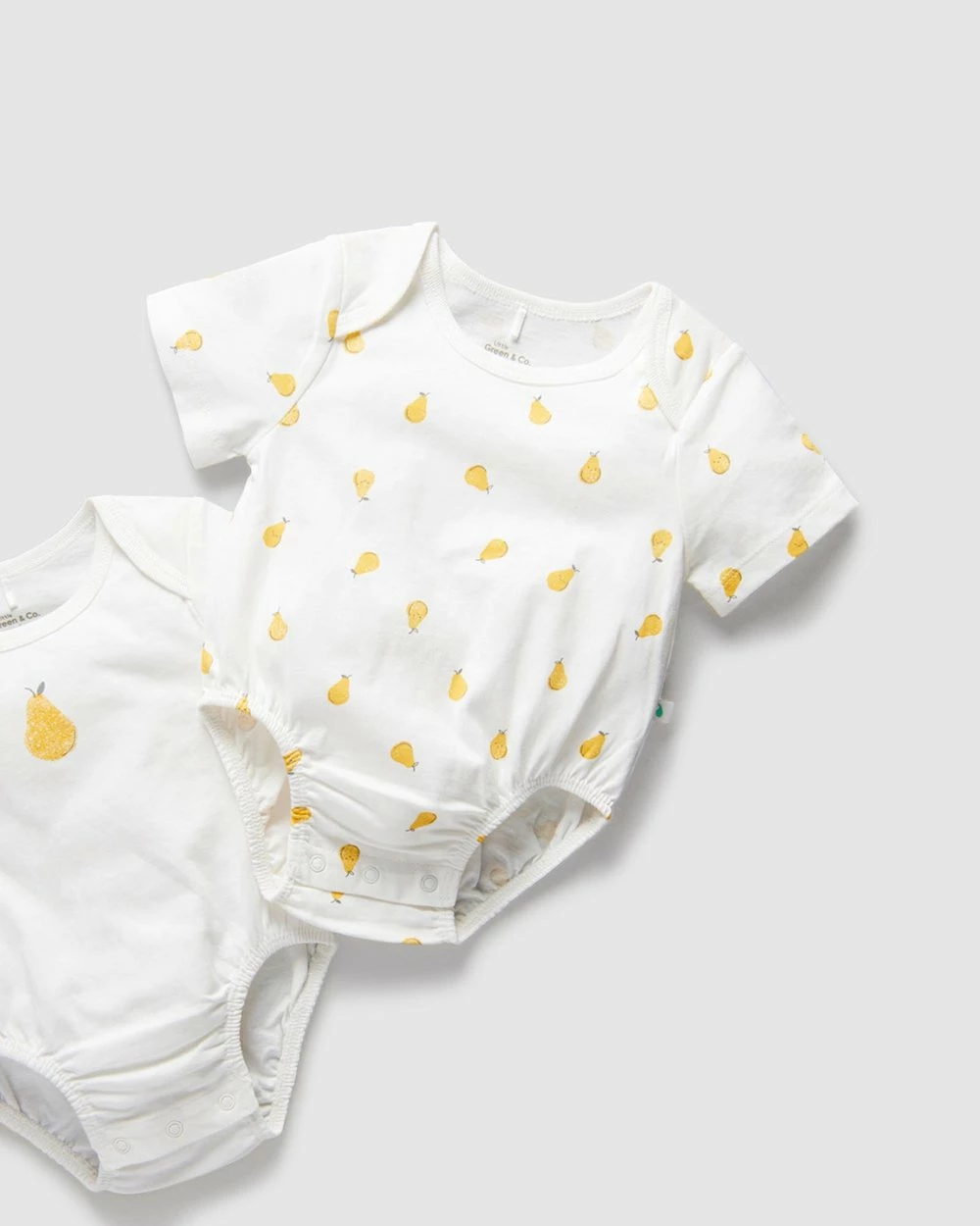 Perfect for layering underneath outfits, the 2-Pack Short Sleeve Bodysuit by Little Green & Co is the ultimate set for a budding wardrobe.