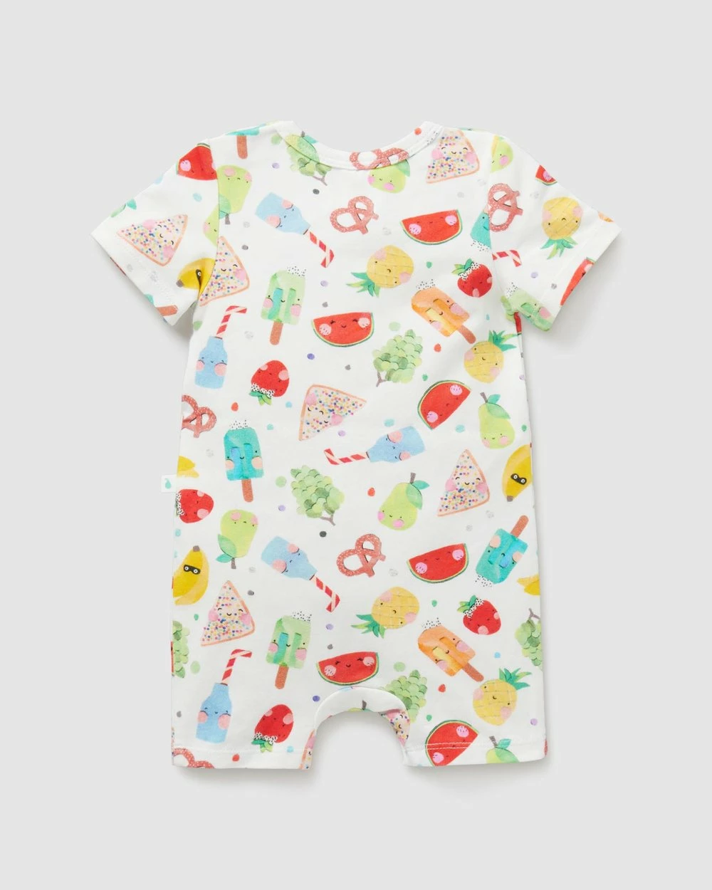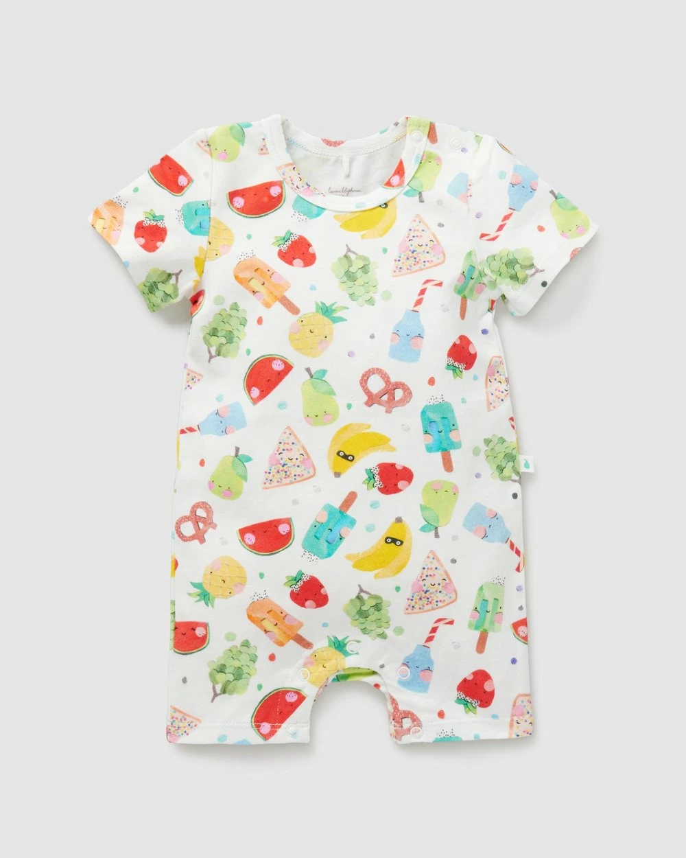 Bring some playfulness to their wardrobe in the printed Jersey Short Sleeve Romper by Little Green & Co.
