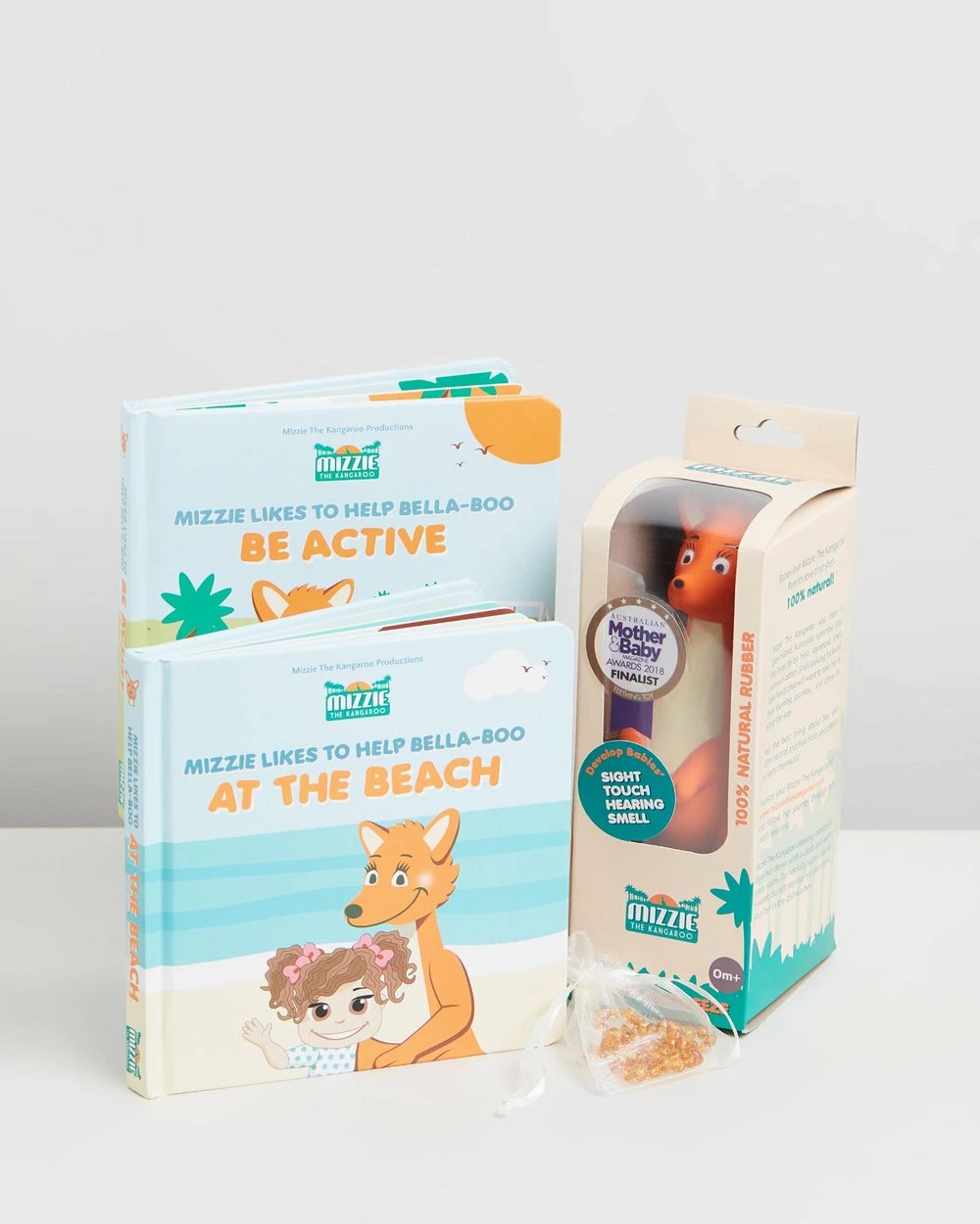 The Deluxe Baby Shower Gift Set is the ultimate gift for the mother-to-be in your life and will take her and her mini-me on endless adventures with Mizzie The Kangaroo, featuring two interactive readers, an amber teething necklace and a teethe-and-squeeze natural rubber kangaroo that is sure to be a hit all around.