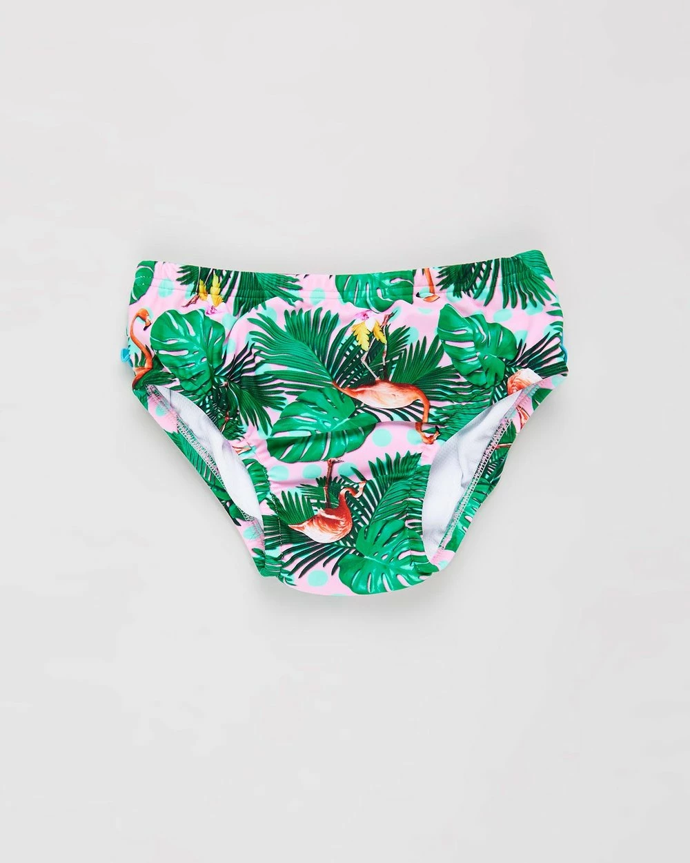 – Pink with mint polka dot print; leaf and flamingo motifs