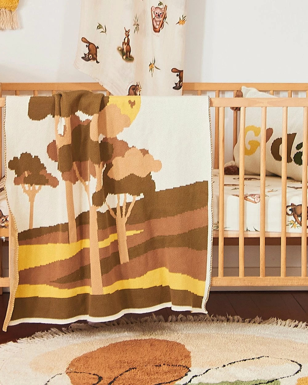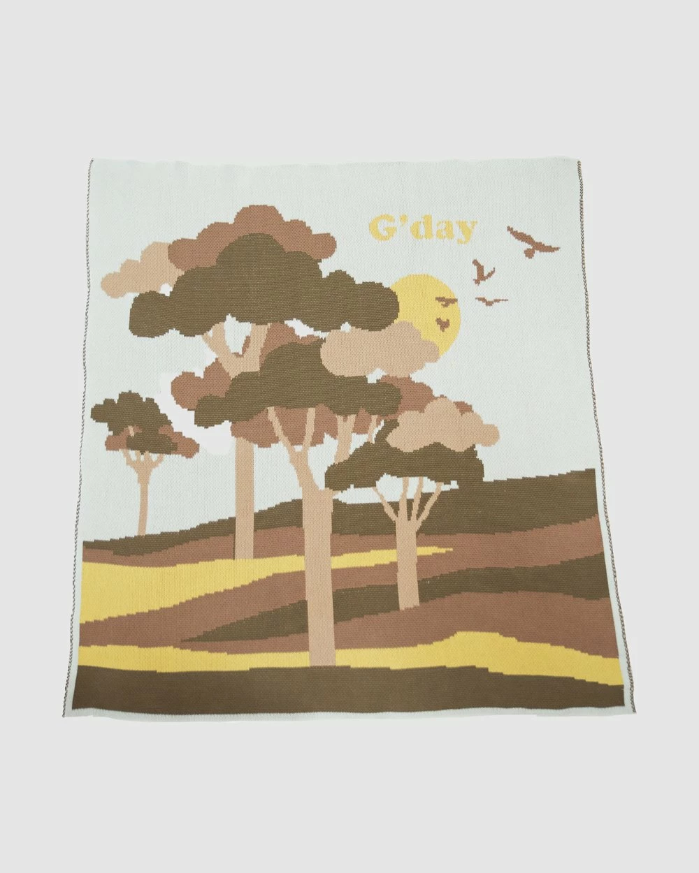 Say G’day to your little mate all rugged up in this picturesque tree scape by Banabae. Made from 100% organic cotton this lightweight knit blanket is ideal for the Australian temperate climate. The perfect layering piece in the cot or in the pram this snuggly blanket will have your day dreamer snoozing in comfort.