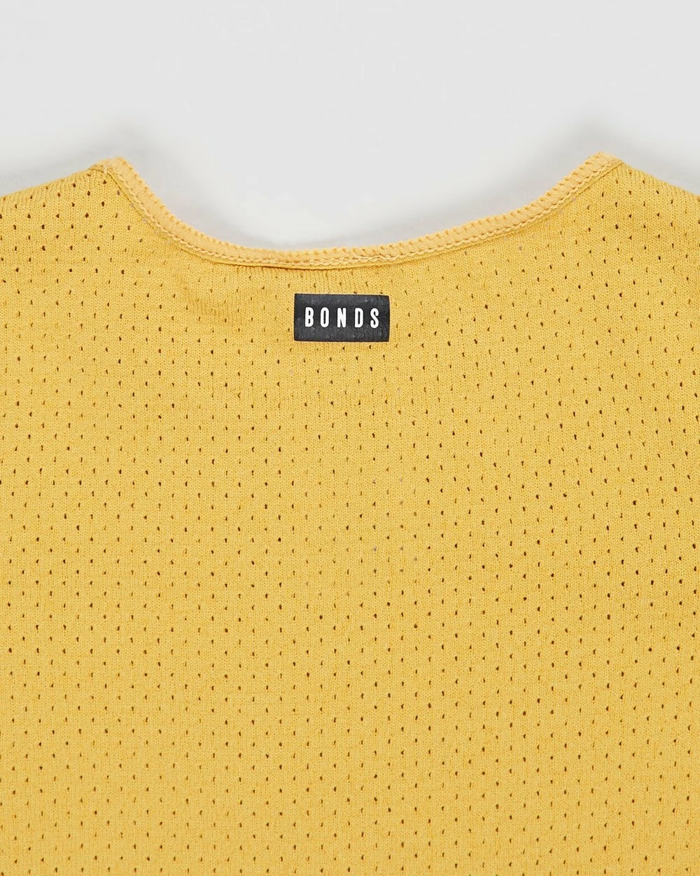 – Bonds Wondercool eyelet fabric; moderate stretch
