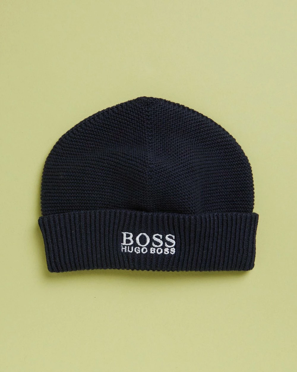 Pair the adorable Pull-On Hat & Slippers Box set by BOSS for the ultimate warm companion to keep your little one cosy.