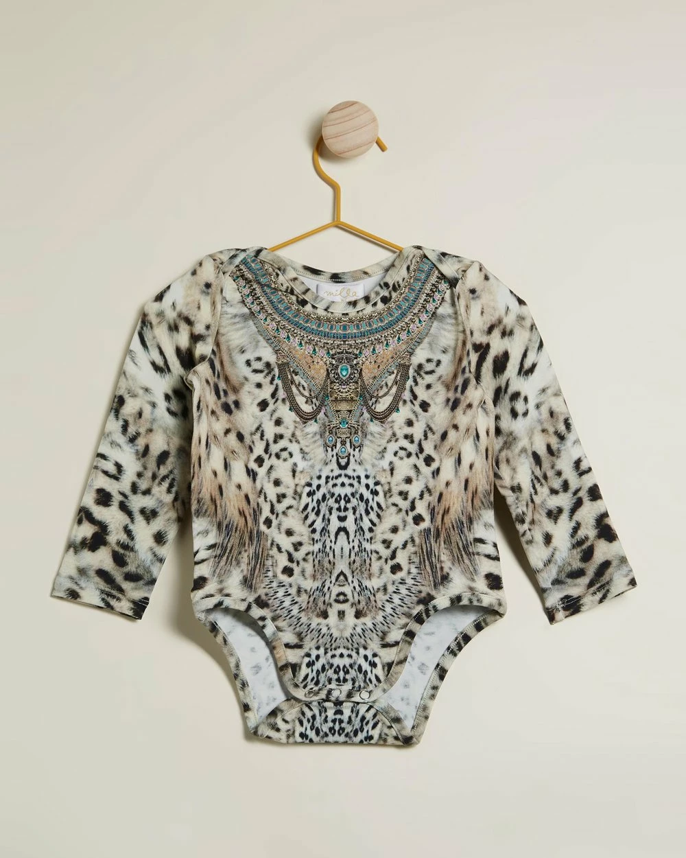 The Onesie – Babies from Camilla is made from a soft stretch cotton jersey and features a print inspired by the beautiful scenery and animals that roam snow-capped mountains.