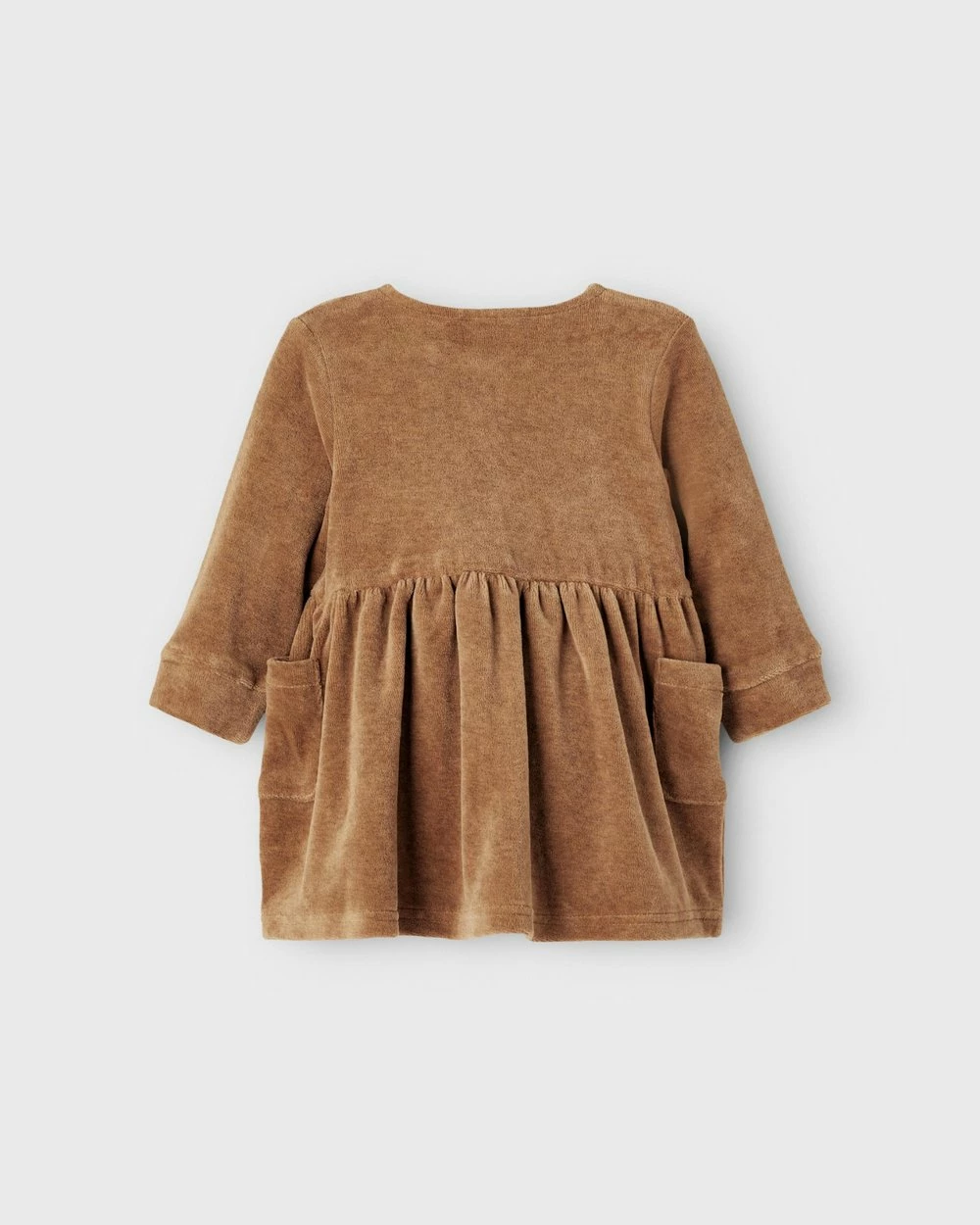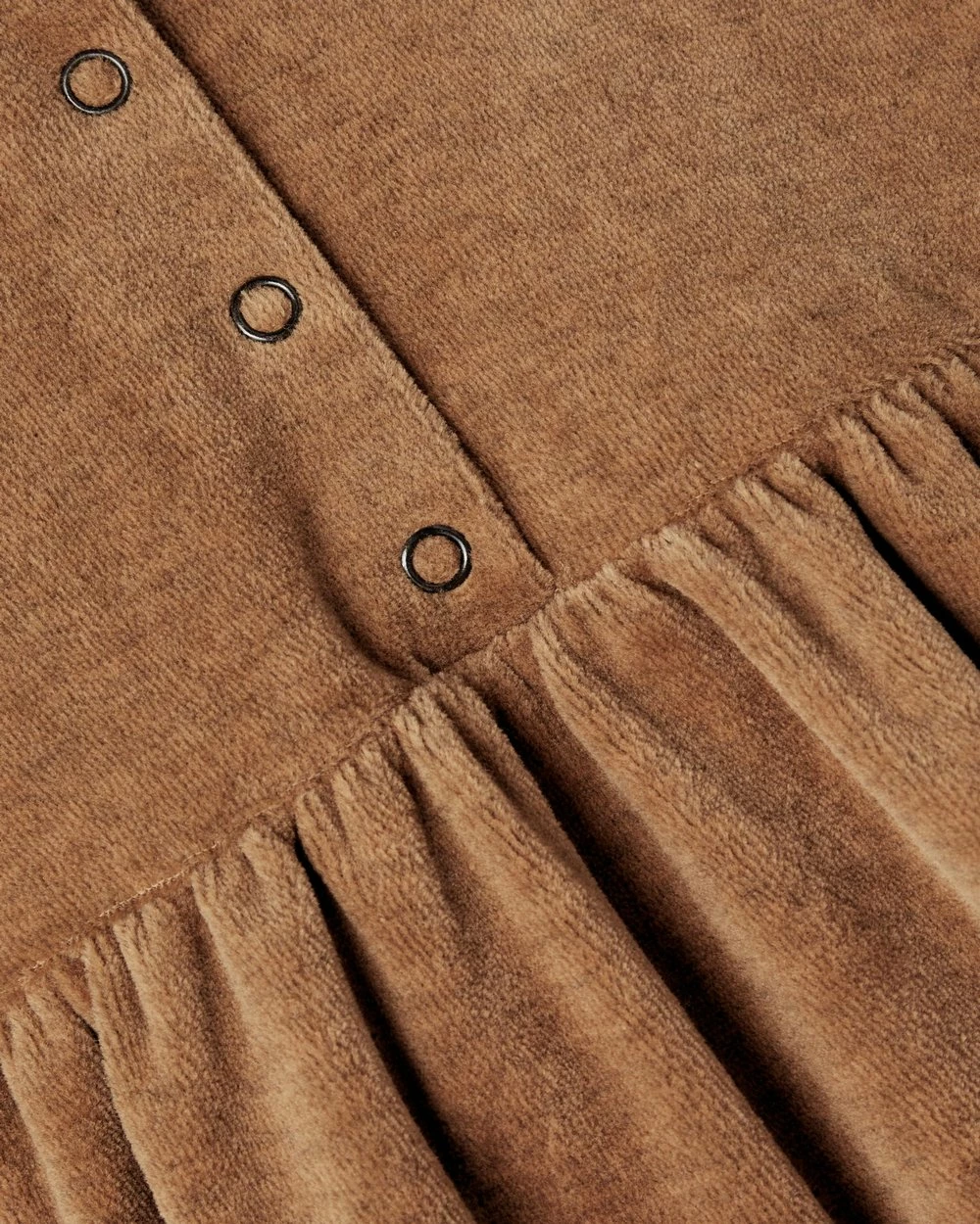 The Rebel Long Sleeve Dress by Lil’ Atelier is fabricated in soft organic cotton. It comes in a lovely on trend caramel. This long sleeve dress is a cosy piece for any winter outfit.