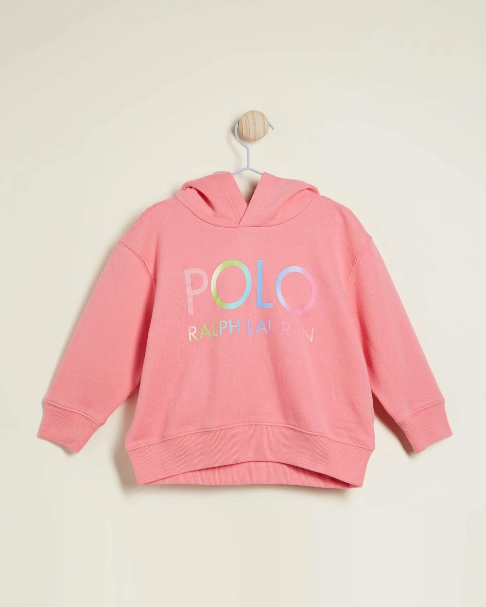 The Logo Hoodie Sweatshirt by Polo Ralph Lauren features soft cotton fleece and a rainbow-hued logo.