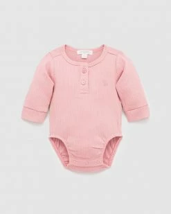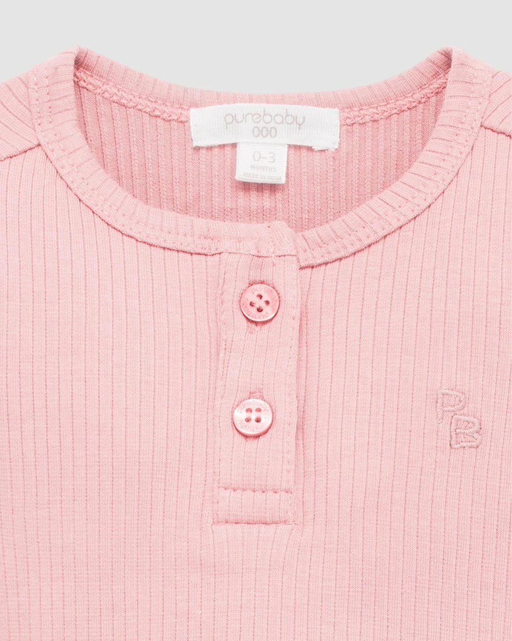 Cheapest 🥰 Purebaby Rib LS Henley Bodysuit – Babies Dusty Rose ⭐