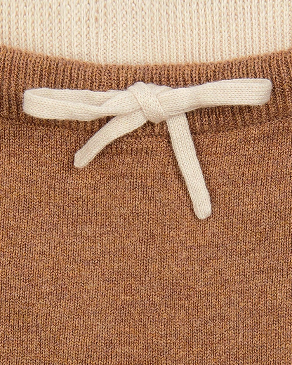 – Certified organic cotton knit with textured melange yarn; natural stretch