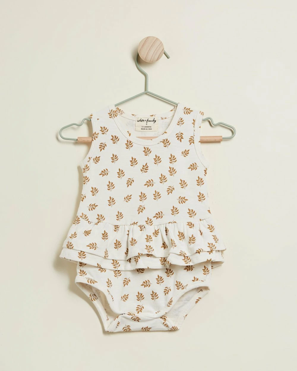 Adorned with ruffle trim to compliment the already blooming pattern, Wilson & Frenchy‘s Organic Ruffle Bodysuit is an artful addition to their daytime wardrobe.