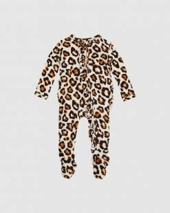 Coupon 🤩 OiOi Ruffled Footed Romper Natural Leopard 😉