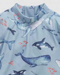 Coupon ✨ Purebaby Printed LS Rashie Set – Babies-Kids Whale Pod Print 😍