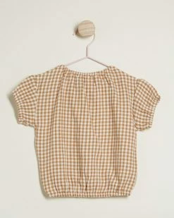 Outlet 😉 Quincy Mae Cinch Short Sleeve Tee – Babies-Kids Honey Ivory & Gingham 🔥