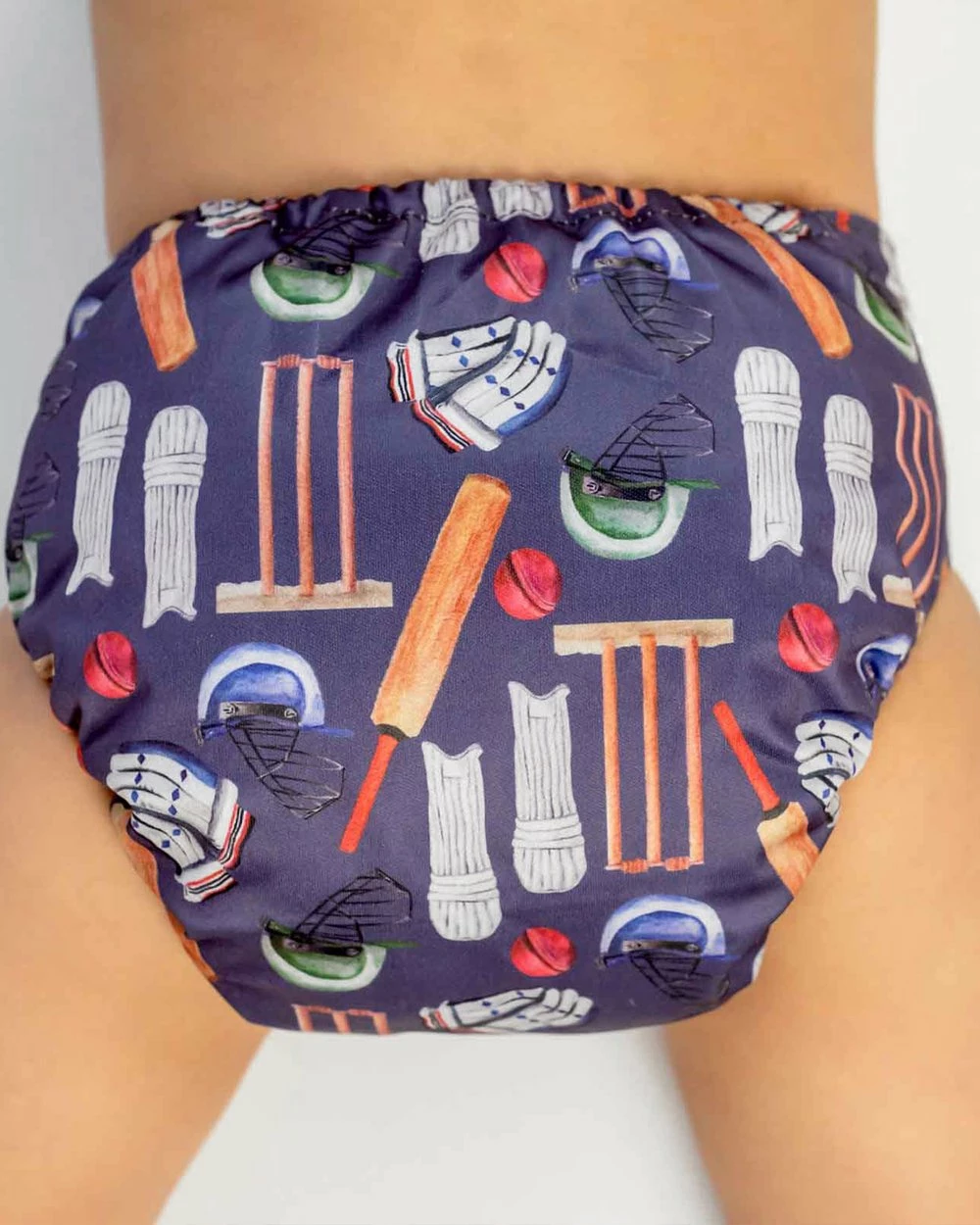 – One Size Fits Most – suitable from newborn, through to toilet training (3.5kg-15+kg, depending on individual body shape)- All-in two nappy providing 3 rise settings for adjustable fit- Australian owned and designed for over a decade- Exclusive custom-designed hand illustrated prints. – Nappy contains two tri-layer inserts; a smaller snap-in insert and a long anchor shaped insert- A pocket opening at the back for additional boosting – Inserts: Custom milled bamboo/cotton inserts with vegan suede topper to draw moisture away from skin- Cover: PUL (polyurethane laminate) outer, which keeps moisture from leaking through