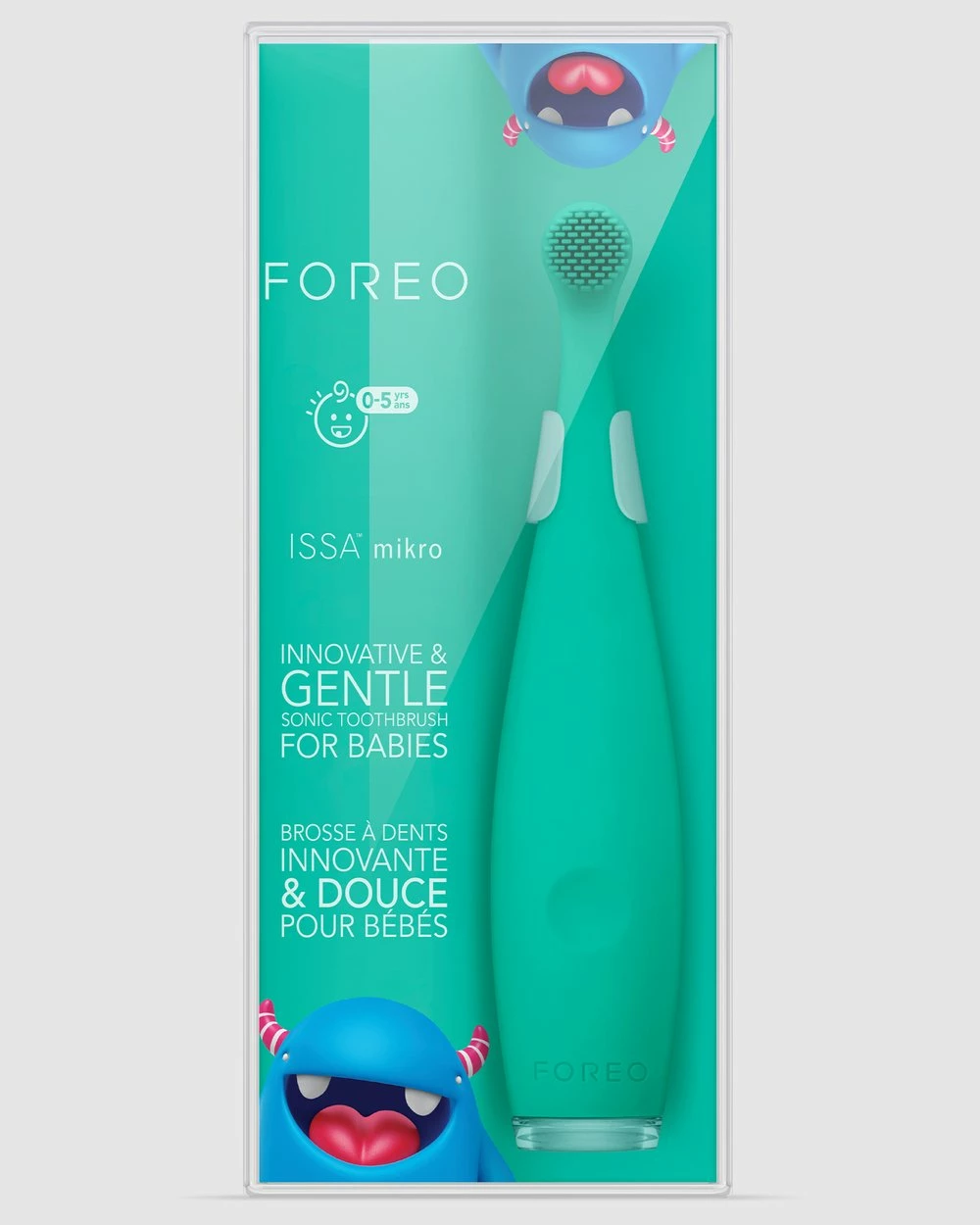 FOREO’s ISSA Mikro is an electric toothbrush for those aged 0-5, featuring silicone bristles and gentle sonic pulsations. Apply toothpaste or soothing gel, then choose from either the massage mode or brush mode, use circular movements for 2 minutes then rinse.