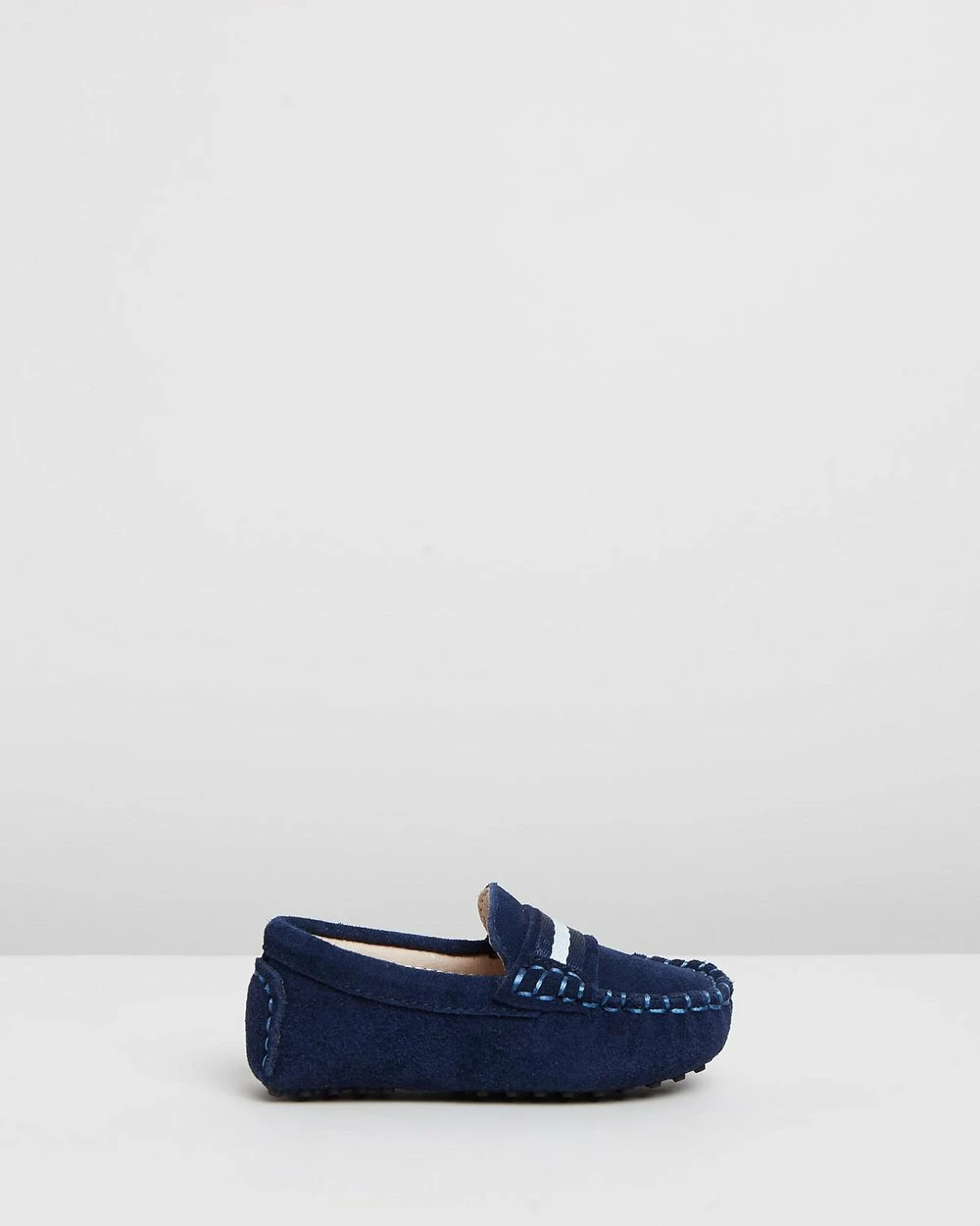 The Milan Loafers by Oscars For Kids are crafted from classic navy suede with soft leather footbeds for an elevated pair that will inject a timeless and refined aesthetic into your little one's smart-casual edit.