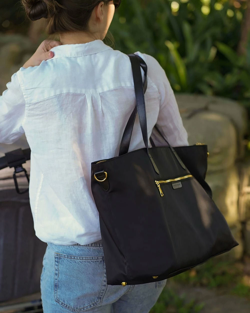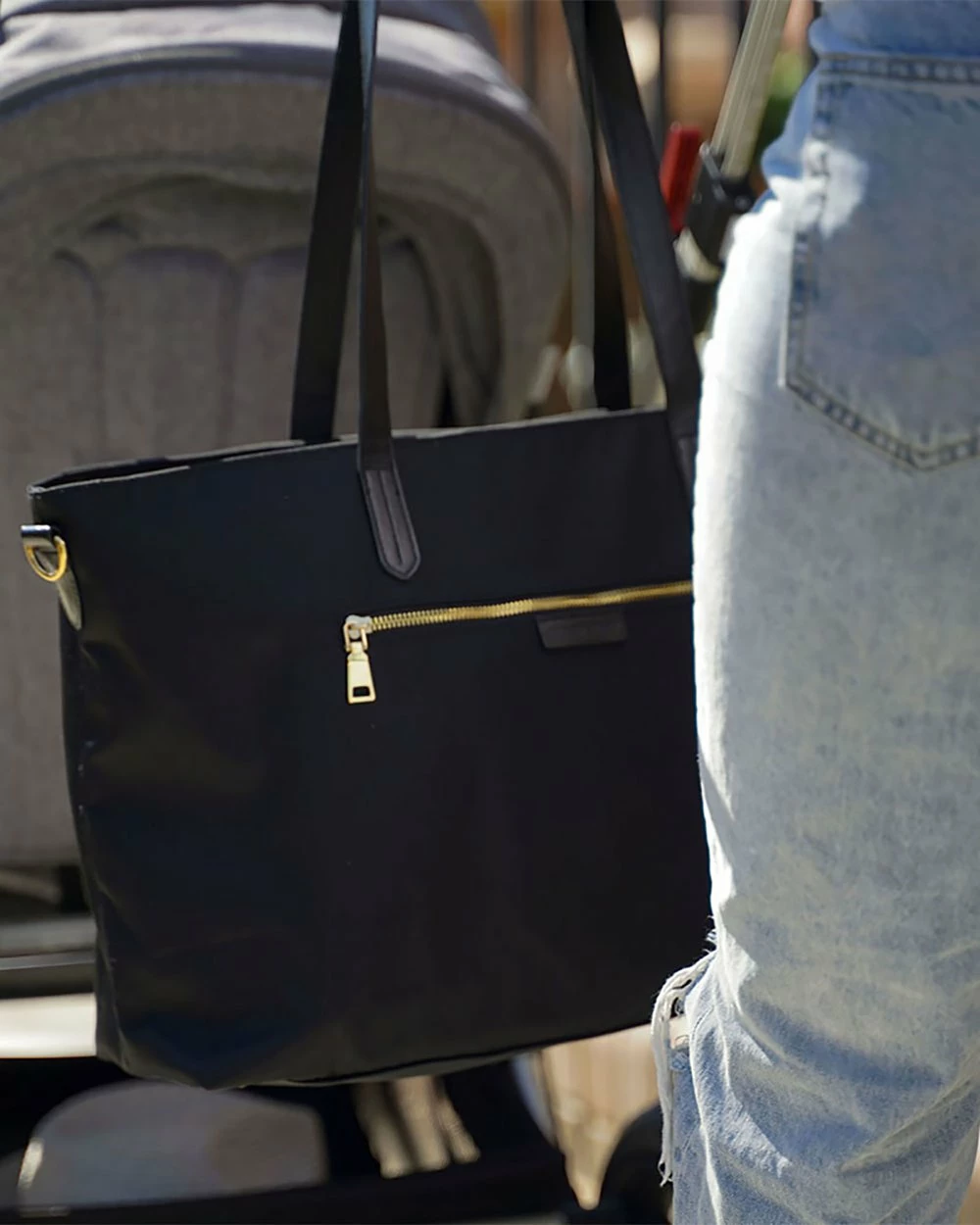 – Luxe Nylon Tote Bundle comes with Original Baby Bag Insert, 1 pair of Stroller Clips and 1 pair of reusable Wet Wipe Pouches