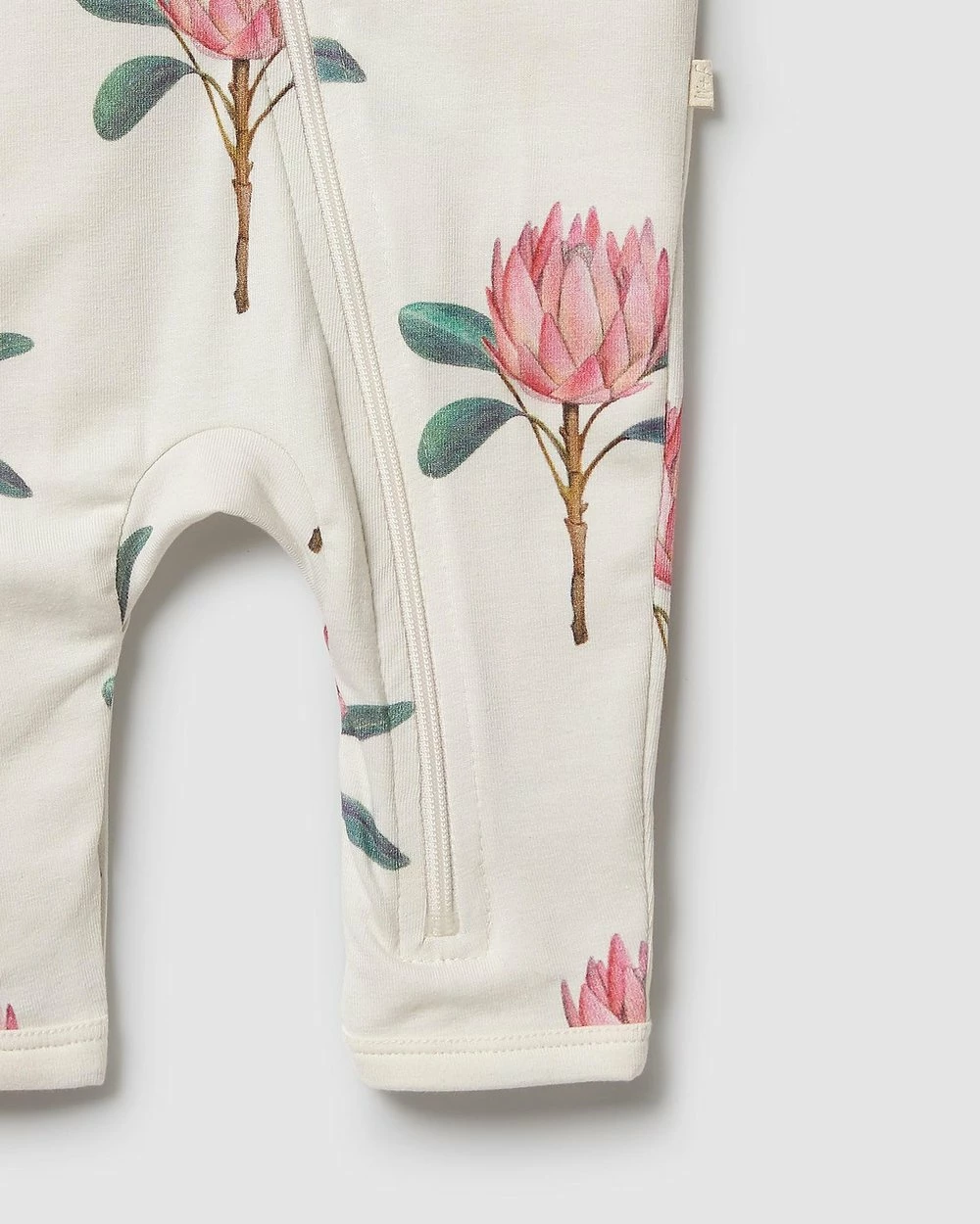 Adorned with blooming sugarbush, Wilson & Frenchy‘s Organic Zipsuit is an artful addition to their daytime wardrobe with a zip-front closure for dressing wriggly bubs.