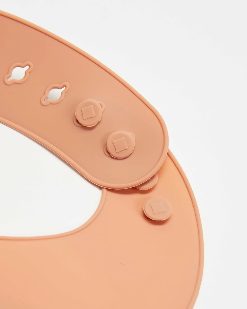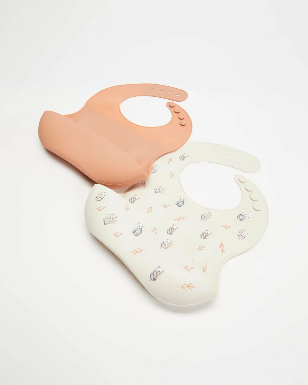The soft and flexible 2 Pack Silicone Bibs from Bebe by Minihaha feature a wide scooped base for easy containment of messy mealtimes.