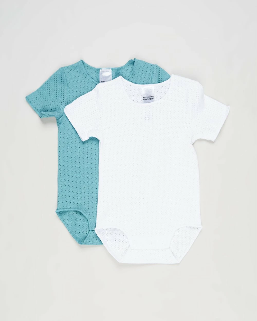 The Wondercool Eyelet SS Bodysuit 2-Pack by Bonds Baby offers a cooler, more comfortable night’s sleep, with the Wondercool fabric’s innovative cooling technology that imitates the skin’s natural bodily process of evaporative cooling.
