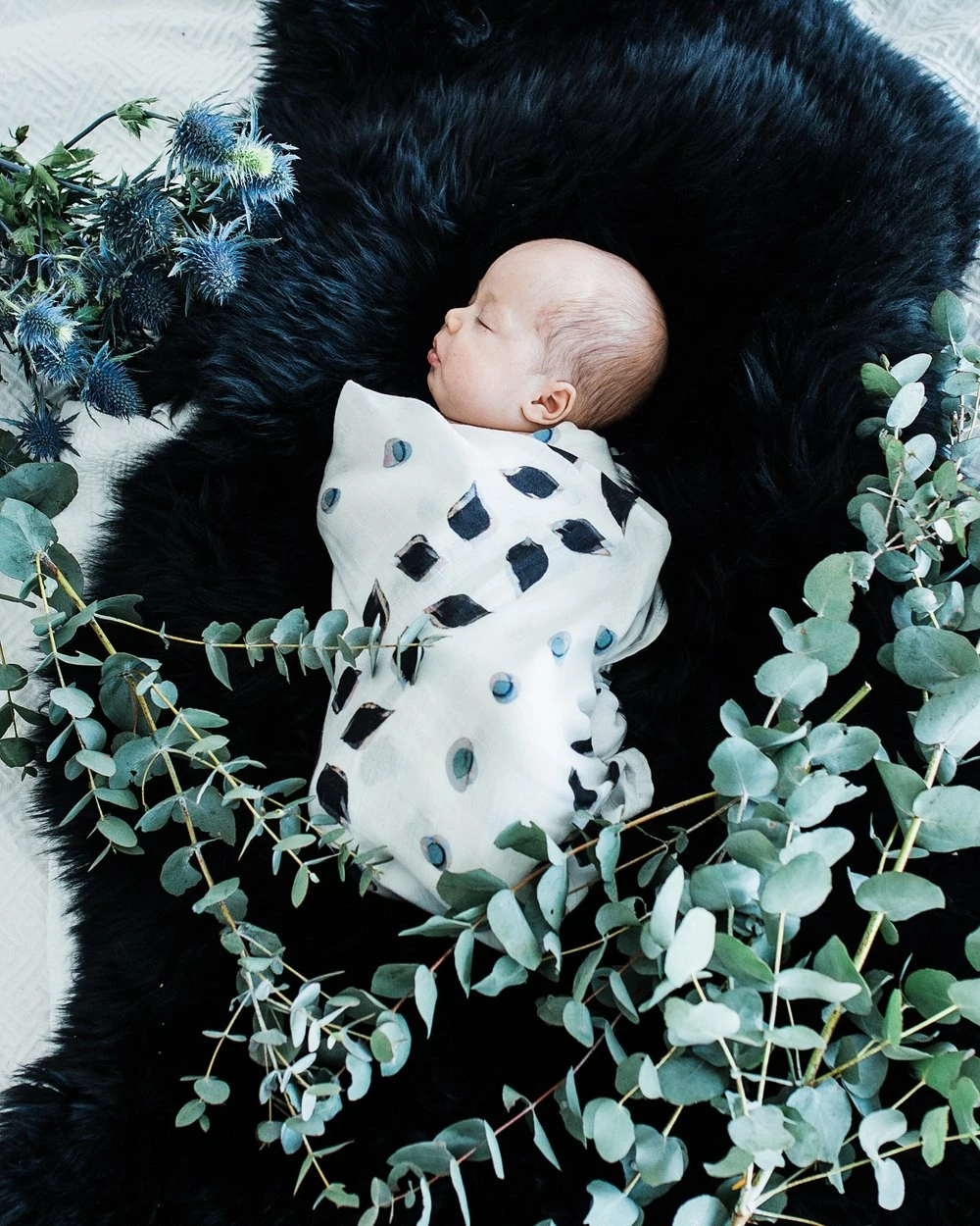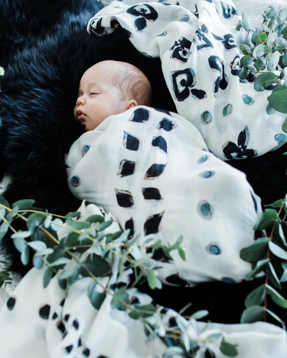 Possibly E&G’s most sought-after swaddle, this subtle monochrome design should be at the top of your wish list. Teamed with a gentle blueish hue, the Evie & Grey Sweetest Love wrap is gender-neutral and the perfect accessory for all fashion-loving parents. Bamboo is renowned for its antimicrobial, hypoallergenic and breathable properties which make it the perfect swaddle choice for your newborn baby’s delicate skin.