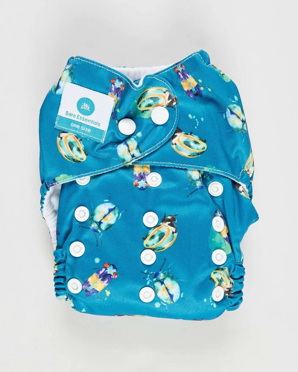 itti bitti‘s Bare Essentials One Size Fits Most Reusable Cloth Nappy + Bandana Bib sits on your bub securely with customisable snap stud buttons promising no-fuss change time with a naturally absorbent bamboo and organic cotton soaker approved by Mother Nature herself.