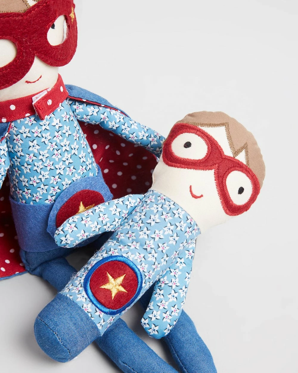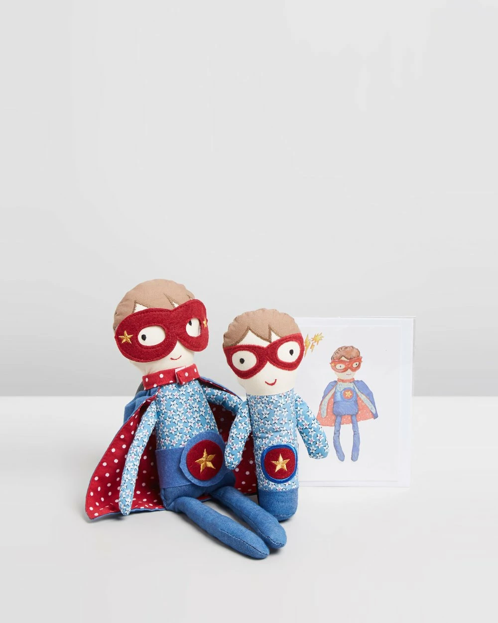 – Small soft super boy toy with internal rattle; larger super boy toy; felt belt detail
