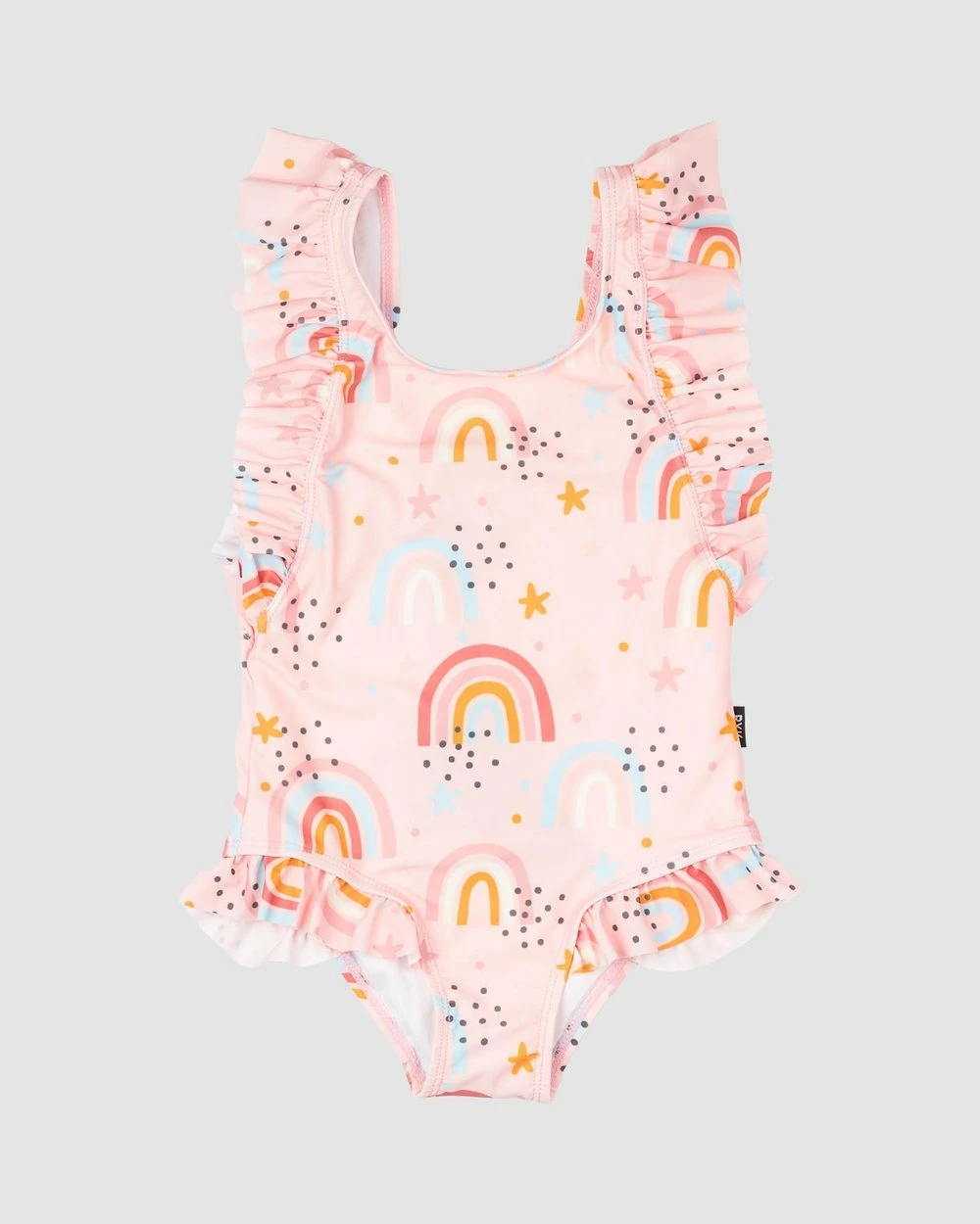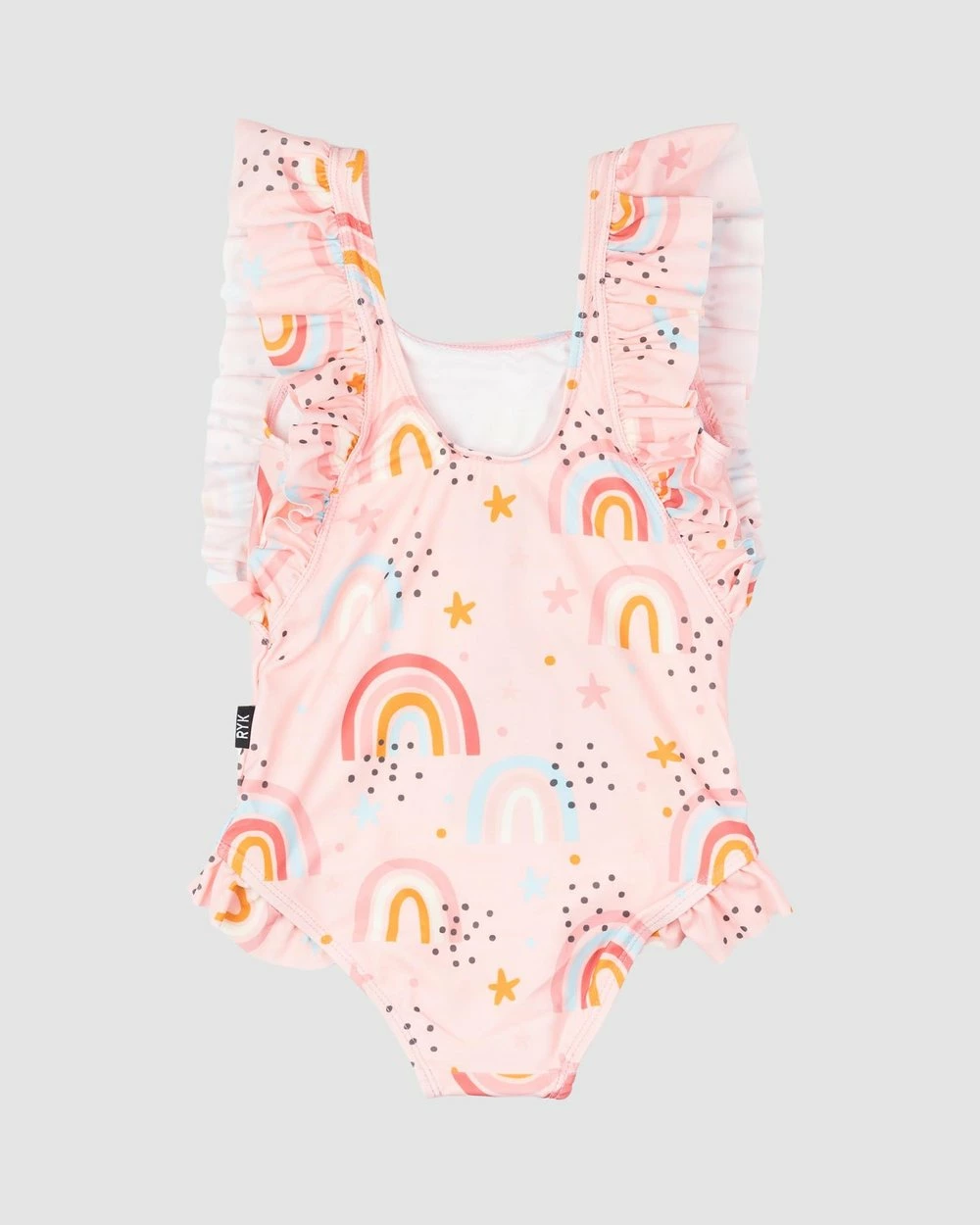 Make a splash this summer in the Sunshine And Rainbows One-Piece from Rock Your Kid.