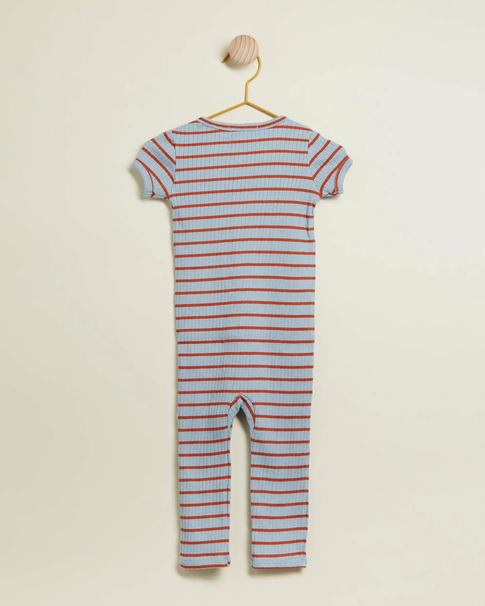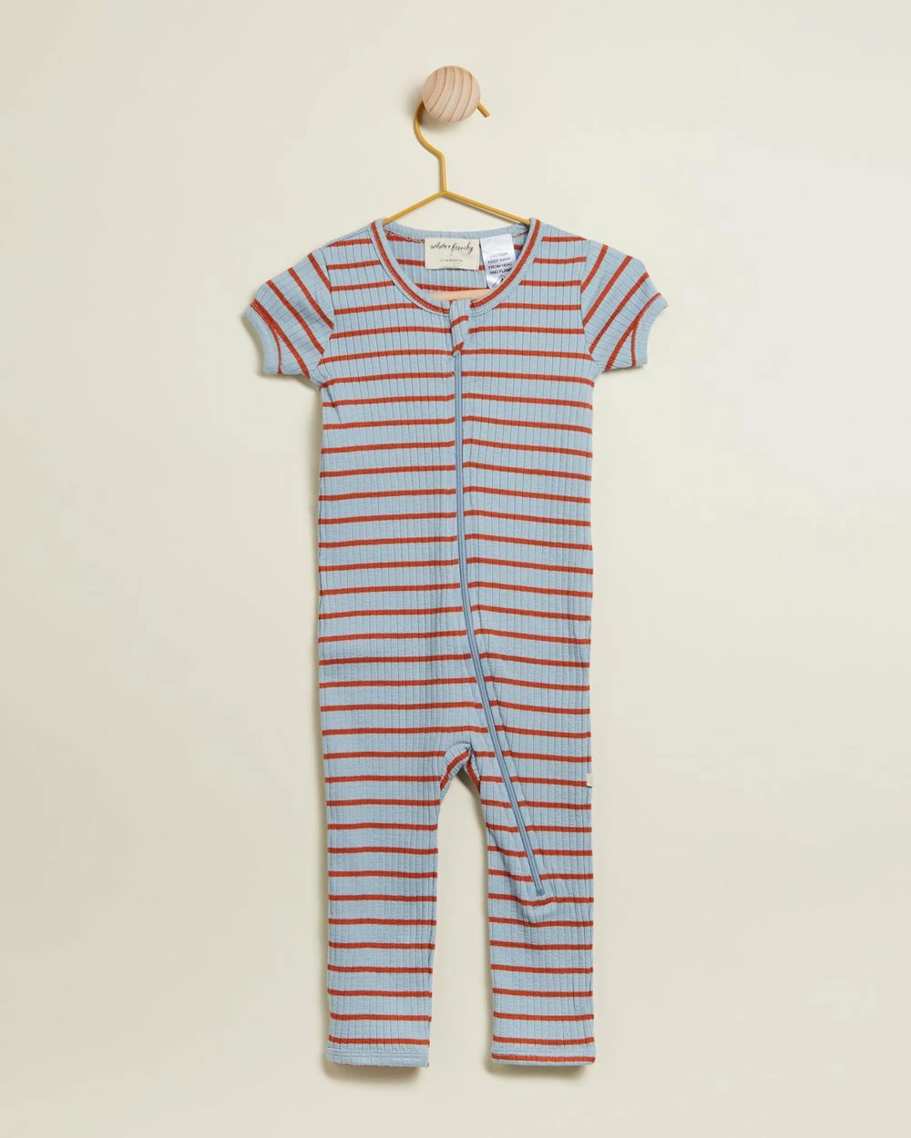 This Organic Stripe Rib Zipsuit has just the right amount of stretch designed to keep your baby cool and comfortable.