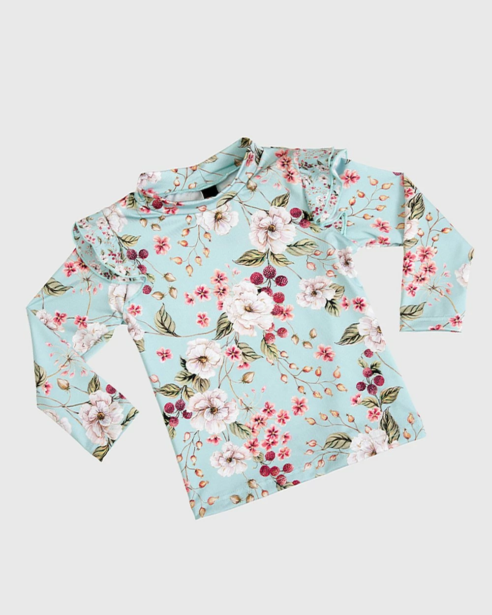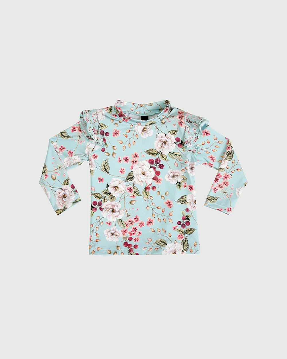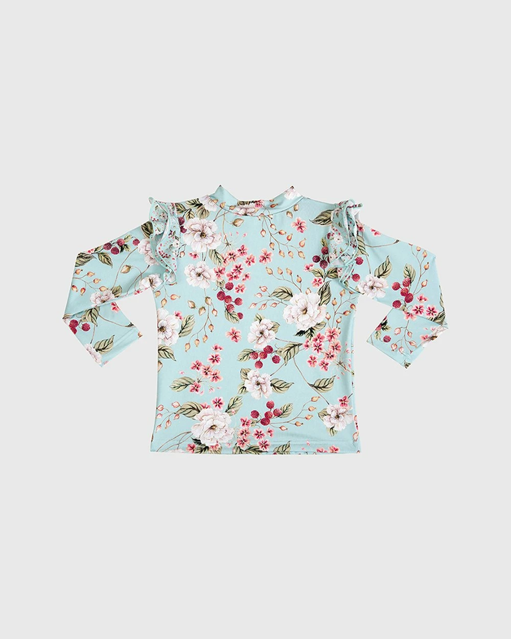 From Australian swimwear label, Aqua Blu Kids,โ comes the โPrimrose Long Sleeve Rash Guard. With its delicate print and soft fabric, it is a gorgeous addition to her growing swimwear collection.