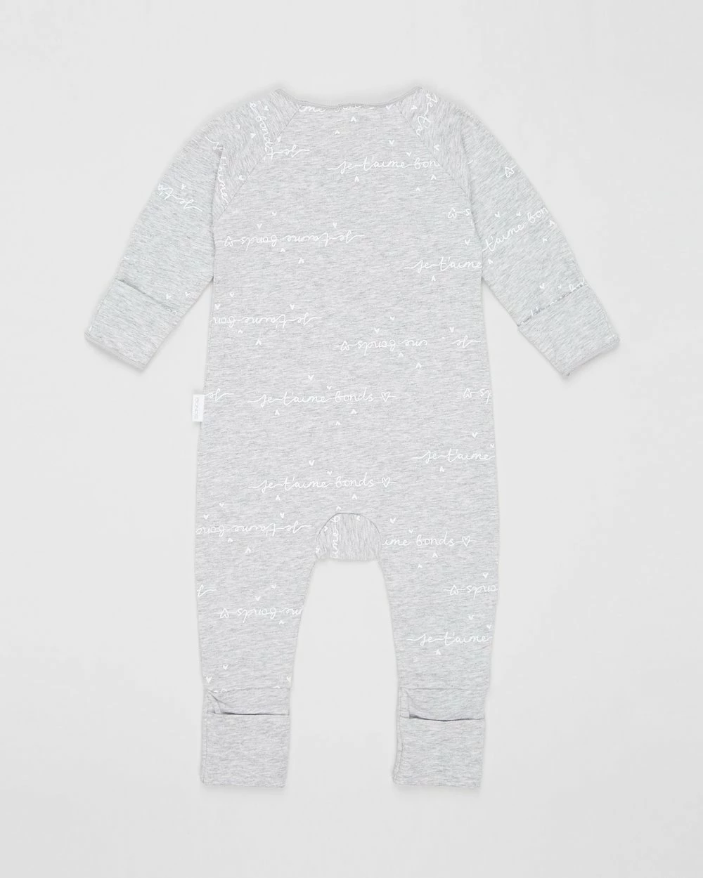 – Light grey base; white Je t’aime Bonds print all over