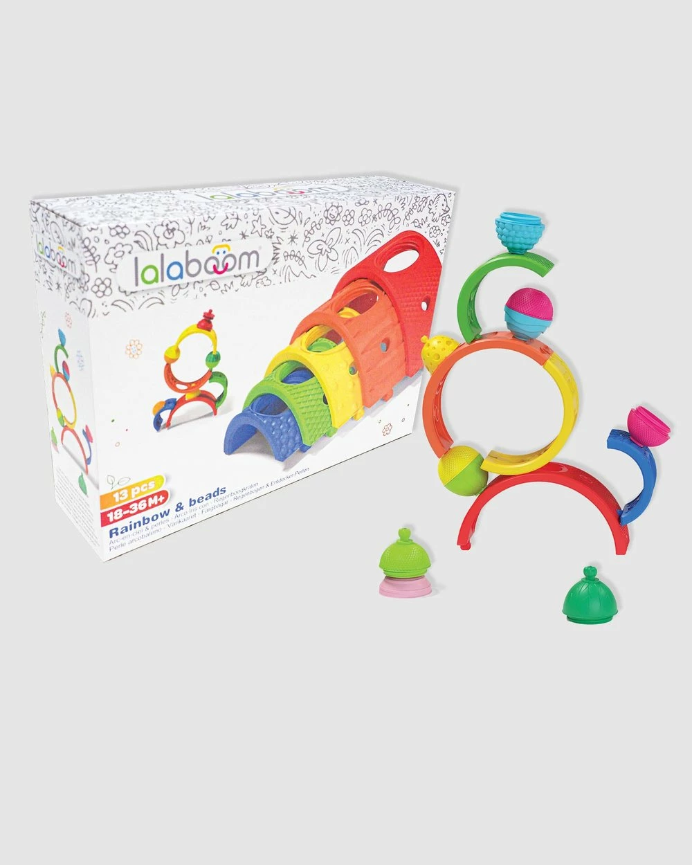 The Lalaboom arches connect perfectly with the beads to offer a large range of possibilities when it comes to playing, stacking and building. With the 5 Arches & 8 Pieces Beads game, they’ll have endless options available, create and play with no limits. Includes 5 brightly coloured arches and 4 beads which can be interconnected. BPA free, Phthalate free, PVC free & dishwasher safe.
