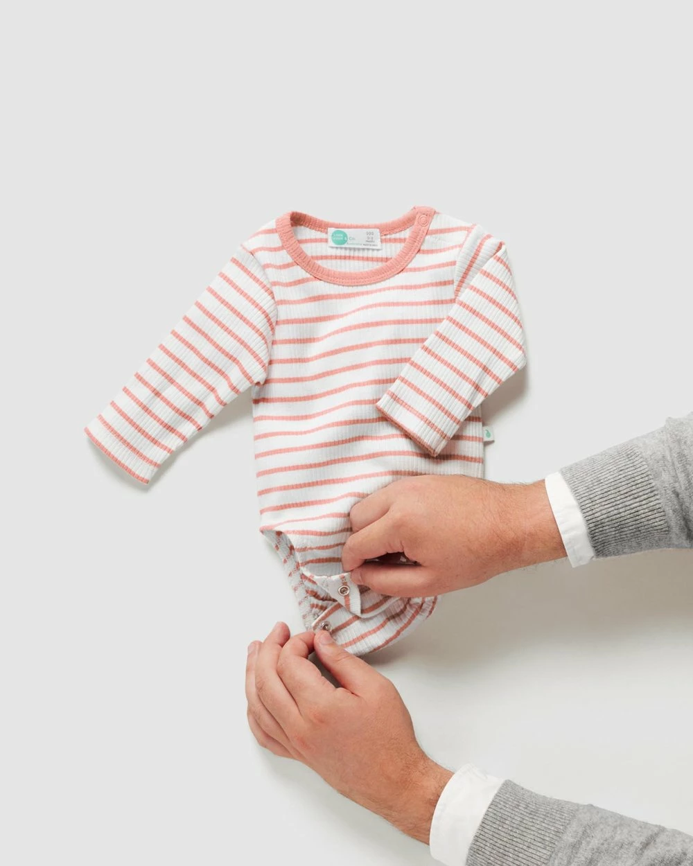 Made from our rib cotton and with long sleeves for added warmth, the Little Green & Co Rib Long Sleeve Bodysuit is great for no fuss everyday dressing.