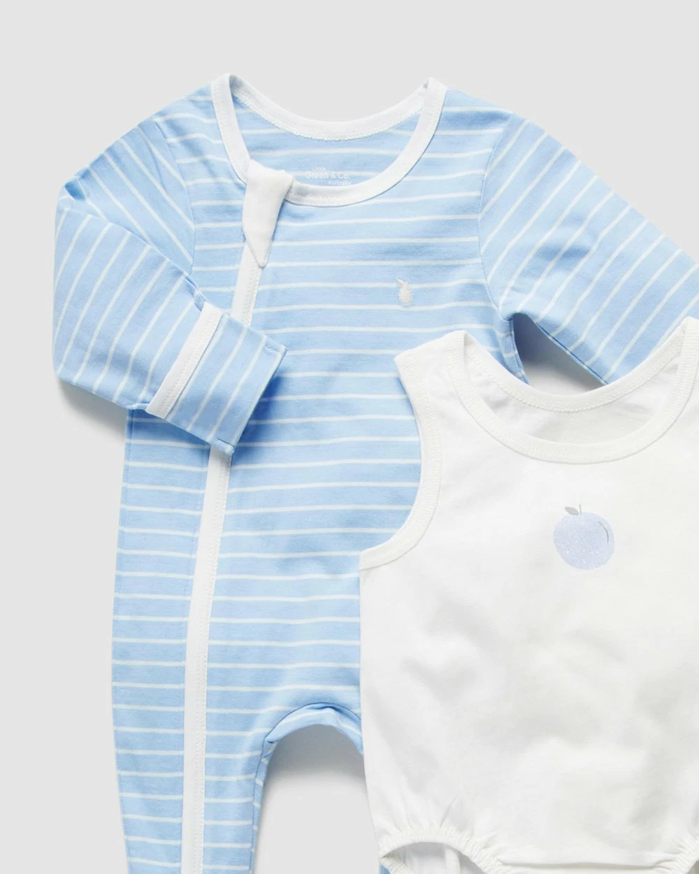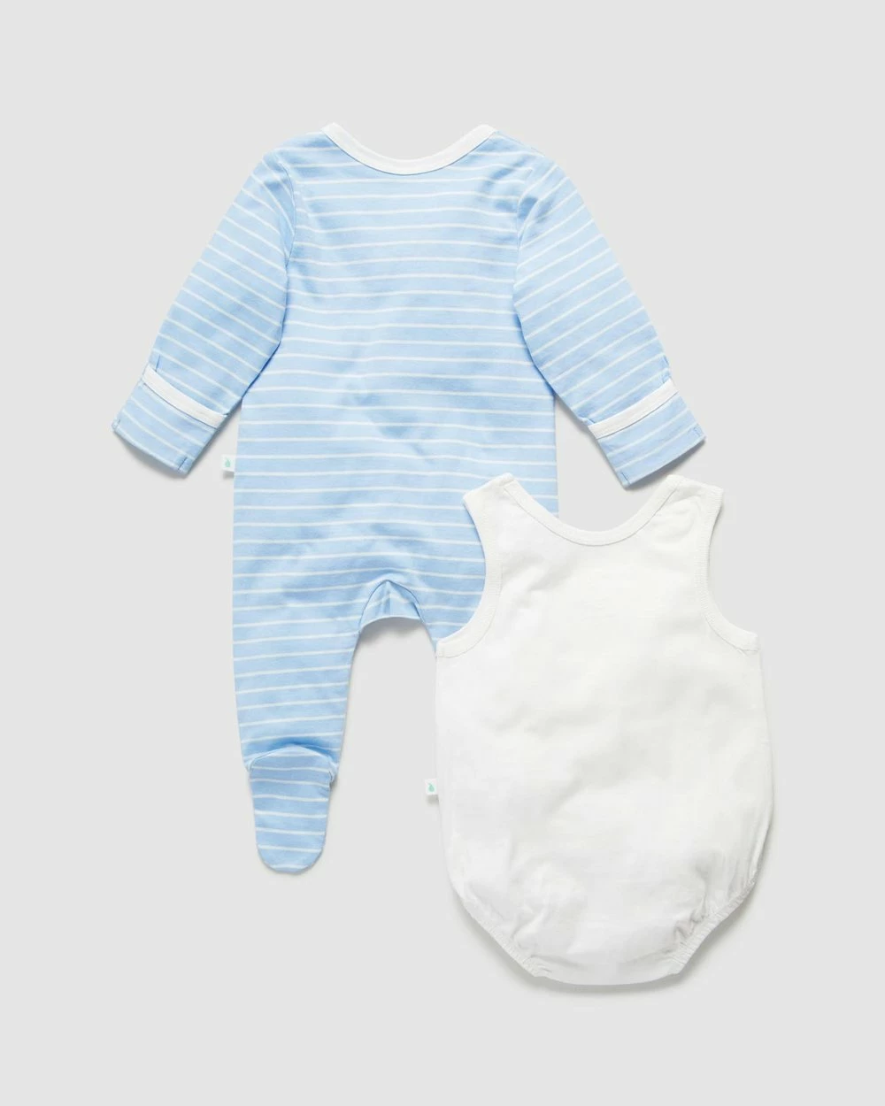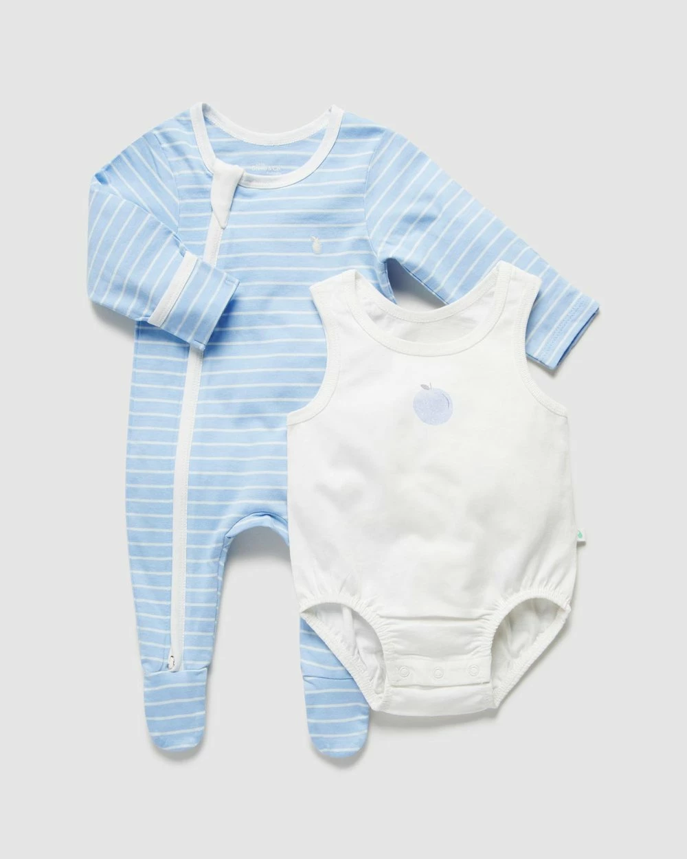 Great for both sleeping and everyday wear, the Zip Onesie & Sleeveless Bodysuit Value Pack by Little Green & Co is the ultimate set for a budding wardrobe.