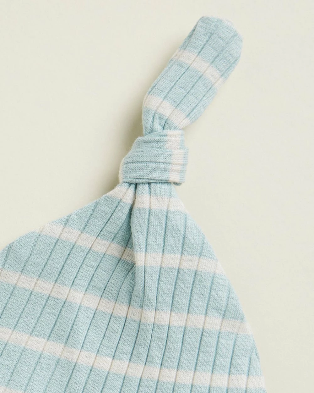 Keep your little one’s head warm with the Organic Stripe Rib Knot Hat from Melbourne’s Wilson & Frenchy.