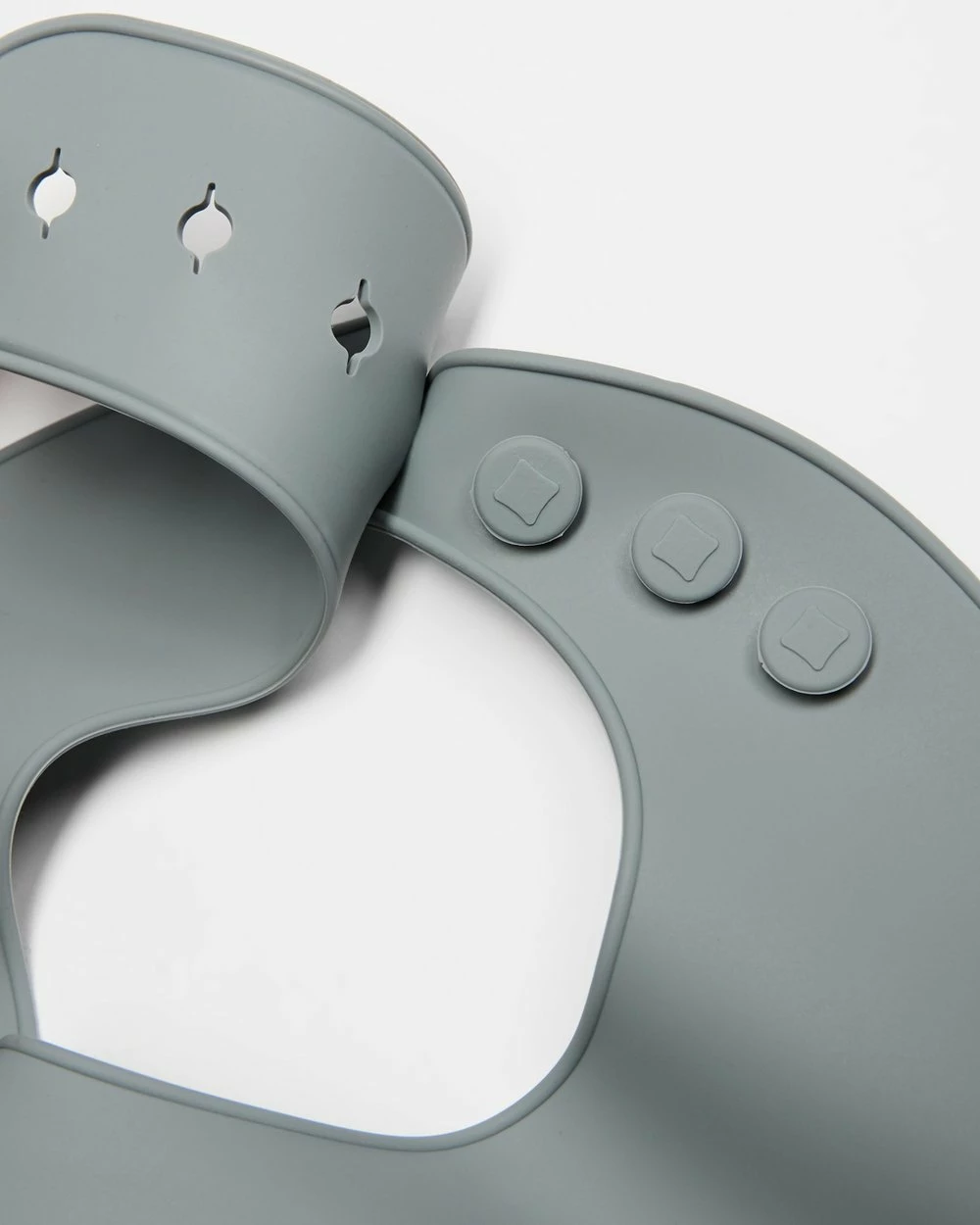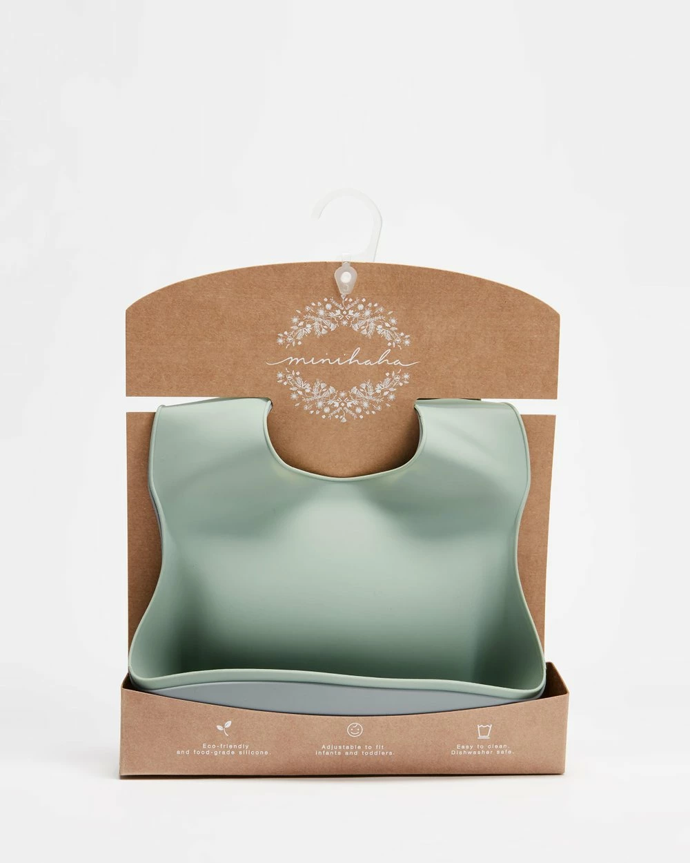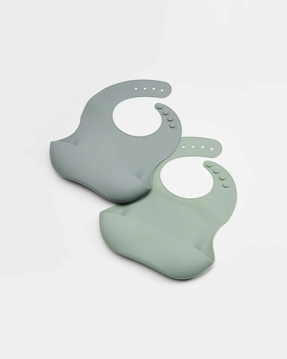The soft and flexible 2 Pack Silicone Bibs from Bebe by Minihaha feature a wide scooped base for easy containment of messy mealtimes.