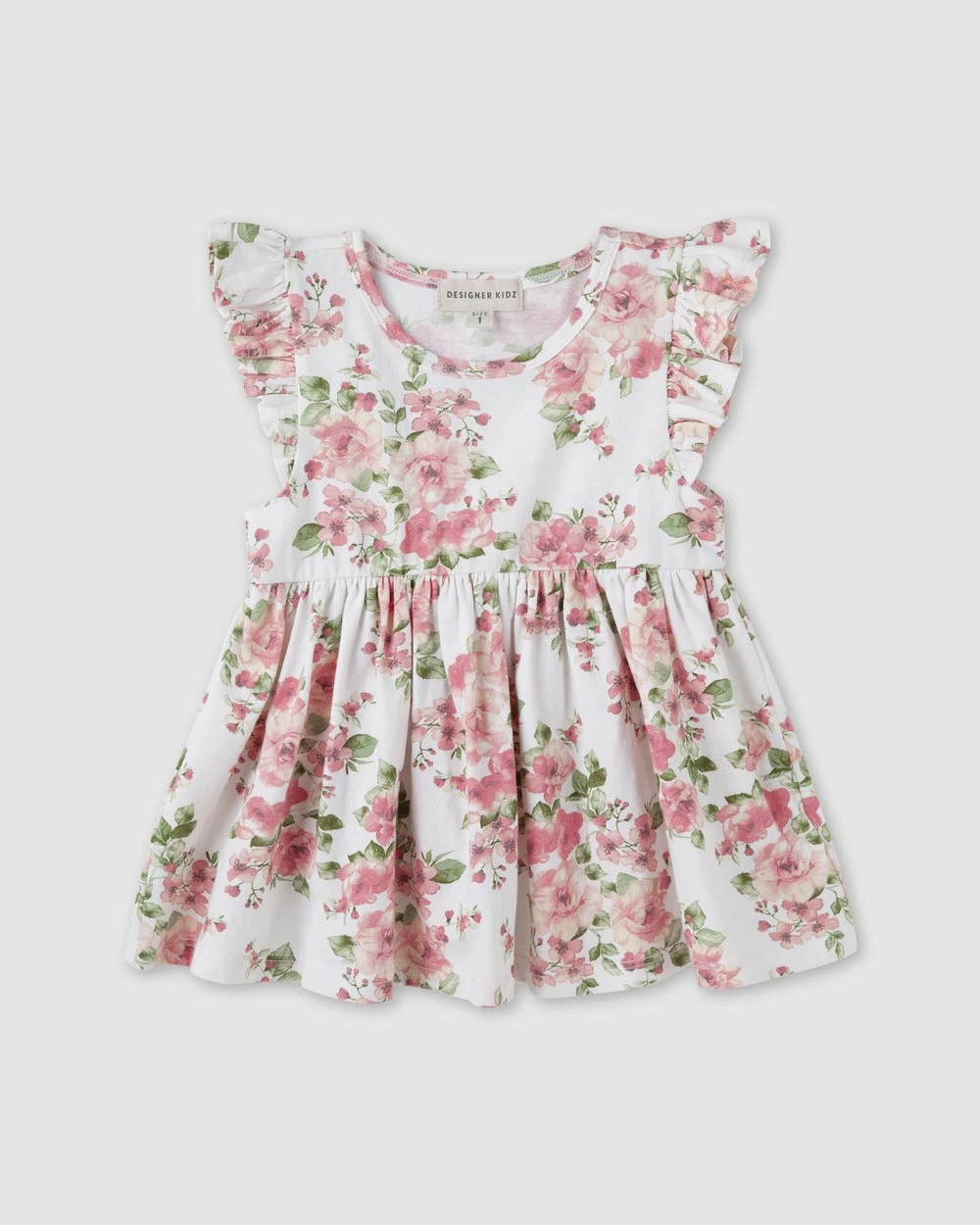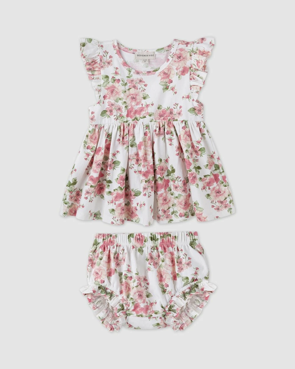 The Evelyn Floral Dress & Bloomer Set features our gorgeous baby floral dress with gathering at the waist and shoulder frills, perfectly matched with a super cute frilly bloomer. Perfect for your little princess’s next special occasion, birthday or party celebration. Designer Kidz is an Australian owned special occasion wear label.