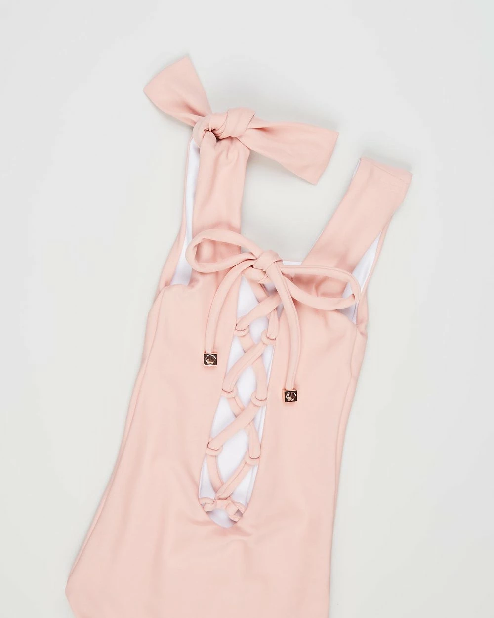 With an adorable bow and lace-up back, the Olivia One Piece by Fiola Rose Swim is the perfect swimsuit for any little girl with big confidence.