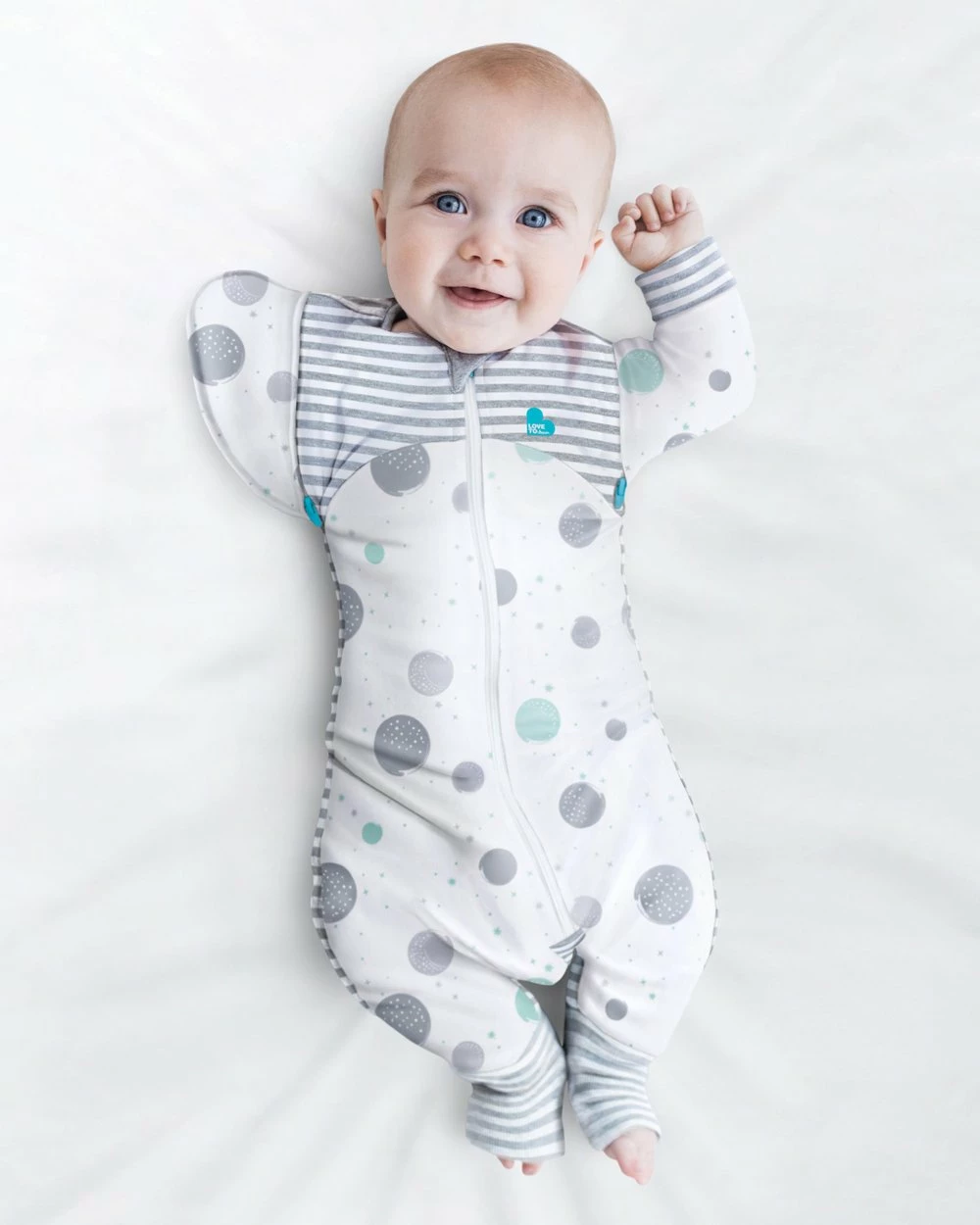 Love To Dream’s SWADDLE UP™ Transition Suit Lite 0.2 Tog can be used to transition from any type of swaddle. The ‘5-in-1’ SWADDLE UP™ Transition Suit Lite 0.2 Tog is a gentle transition solution which helps preserve a baby’s precious sleep routine and is perfect for babies who are ready to transition & love the secure feeling of being swaddled.