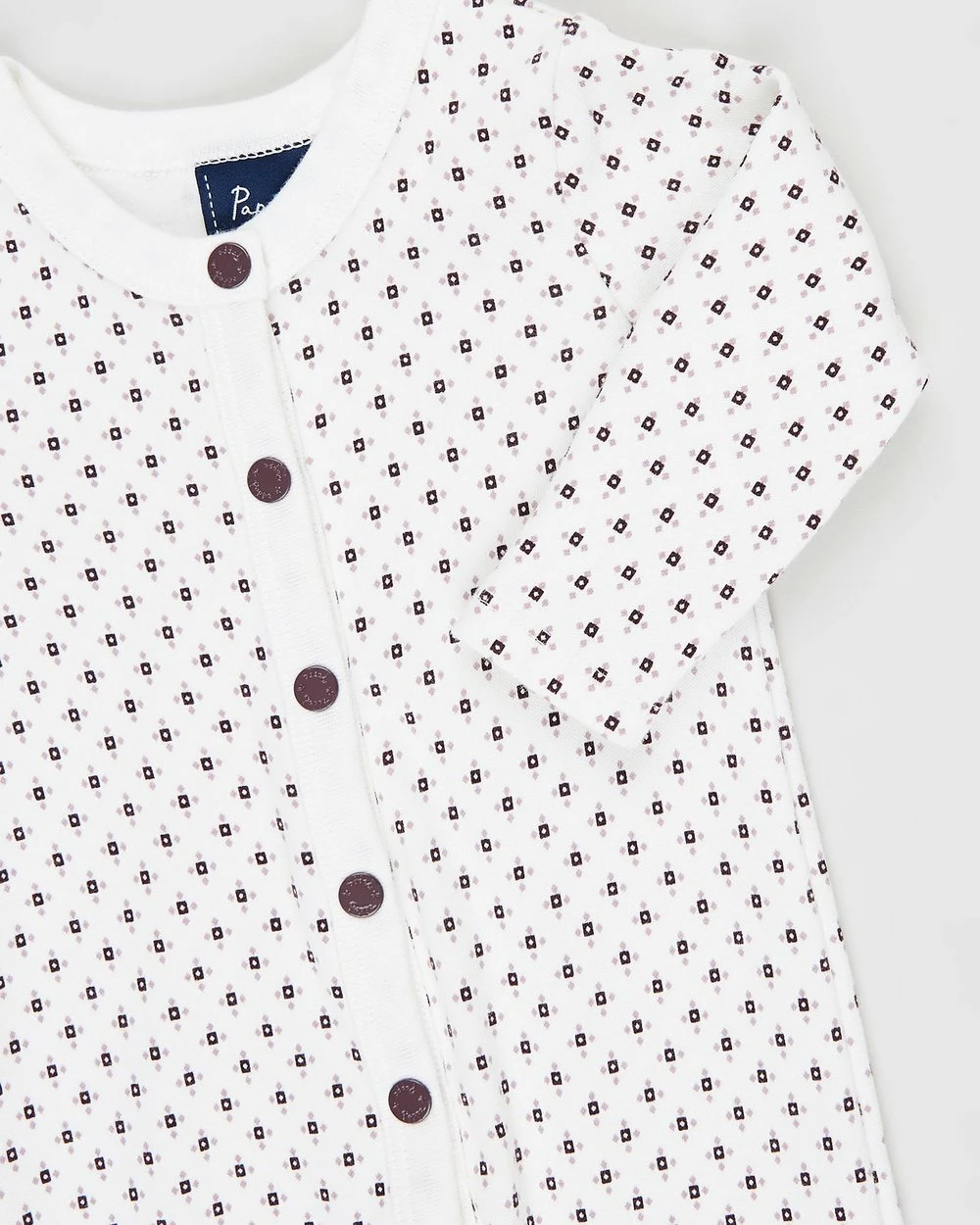 – Full press-stud button front opening from neckline to feet; easy on-and-off wear