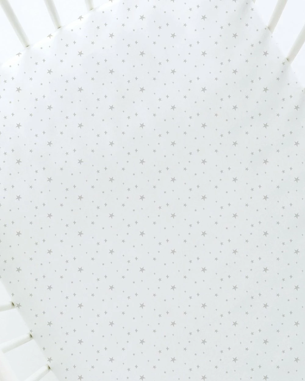 Fitted sheet; 132cm x 70cm x 17cm. Fits all standard cots.