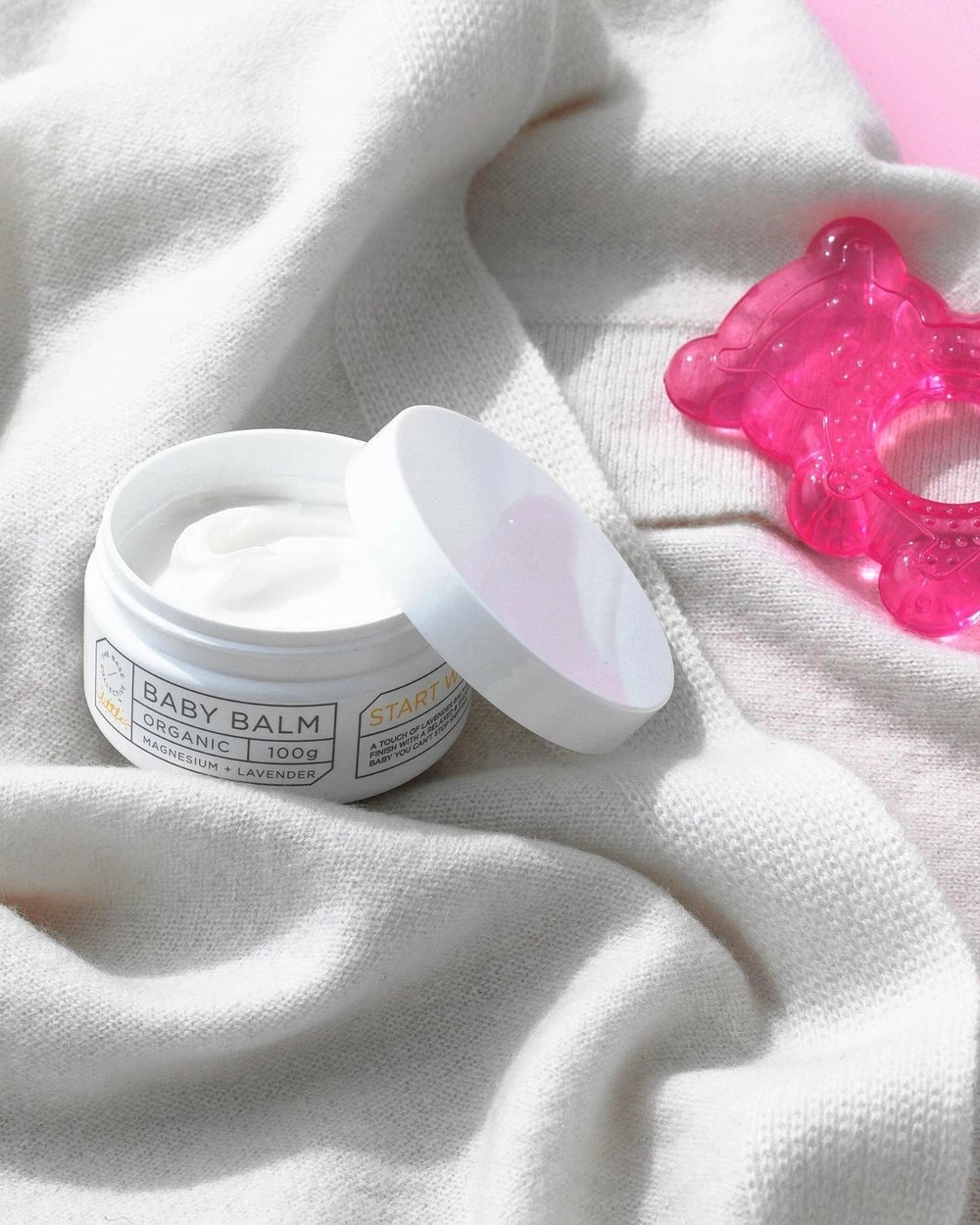 Magnesium & Lavender Baby Balm: Purified Water, Organic Aloe Vera Juice, Sunflower Oil, Cetearyl Alcohol, Organic Shea Butter, Glyceryl Monostearate, Organic Cocoa Butter, Glycerin, Lavender Essential Oil, Xanthan Gum, Magnesium Chloride, Parfum (Natural Preservative), Natural Vitamin E, Potassium Sorbate, Organic White Tea Extract, Citric Acid, Organic Olive Leaf Extract.