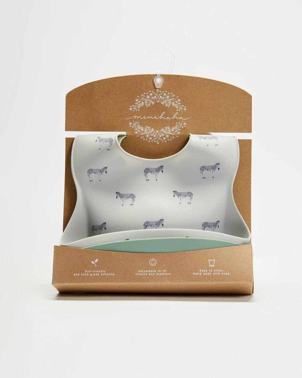 The soft and flexible 2 Pack Silicone Bibs from Bebe by Minihaha feature a wide scooped base for easy containment of messy mealtimes.