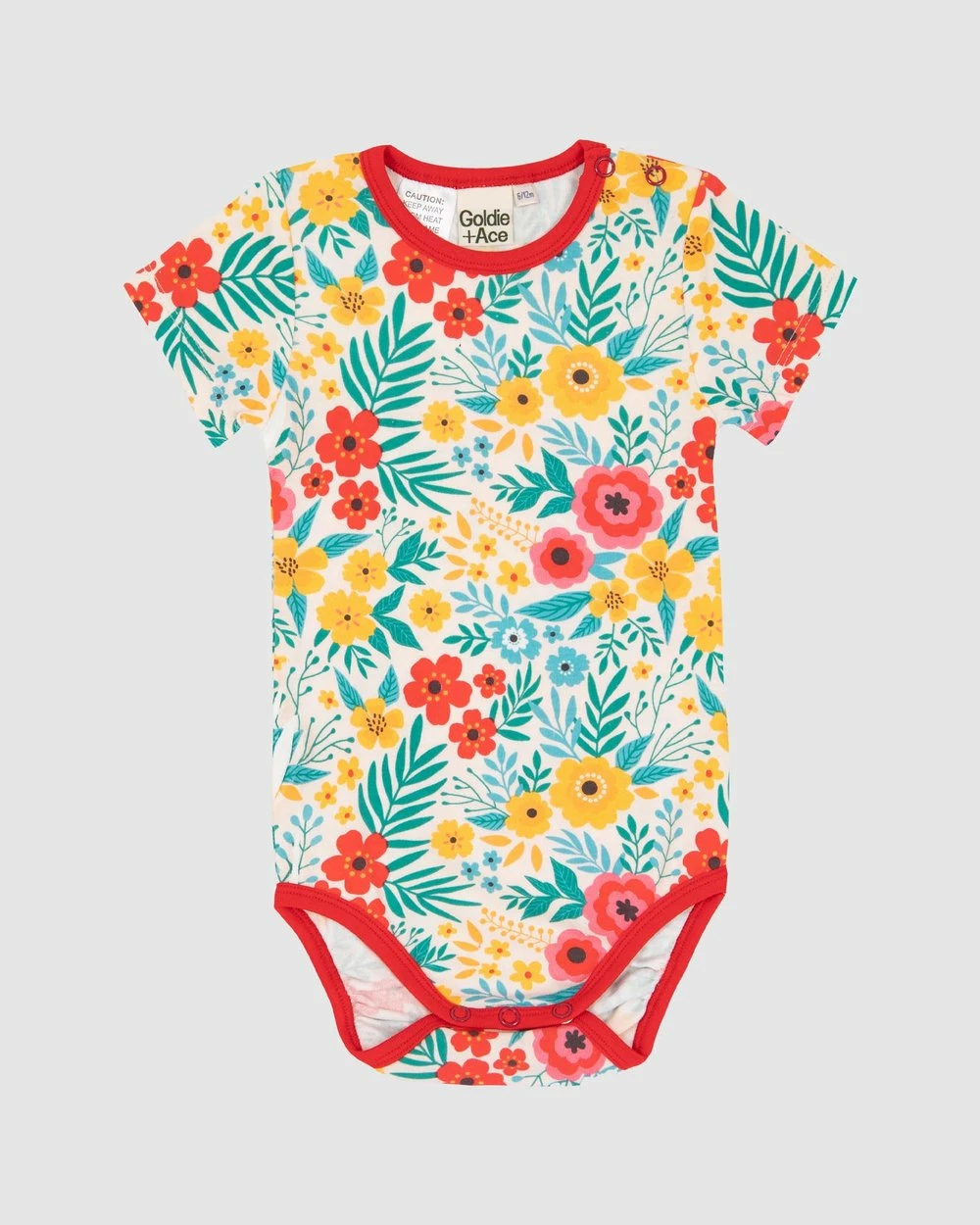 – Snap button closure to neck and inner legs