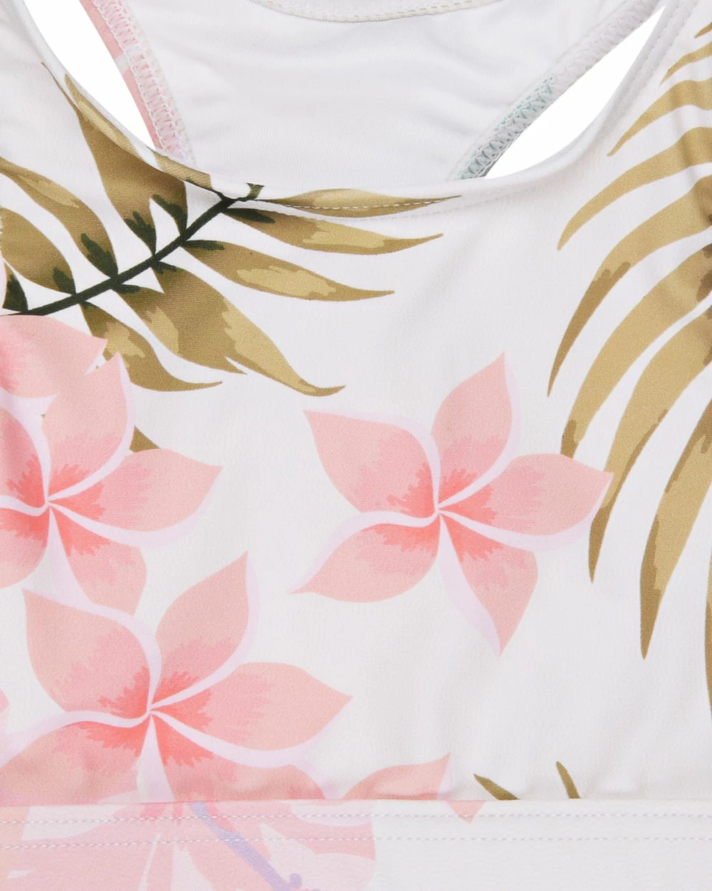 Designed in Australia, Infamous Swim Mini Gia Bikini Set in Paradise print features a classic racer back, scoop neck, crop bikini top paired with high waisted bikini bottoms. This matching set for your tropical mini me is an ideal match to the women’s Infamous Swim Gia Bikini Top and Ginger Bikini Bottoms. All crafted from luxurious Polyamide/Spandex with UPF50+ sun protection.