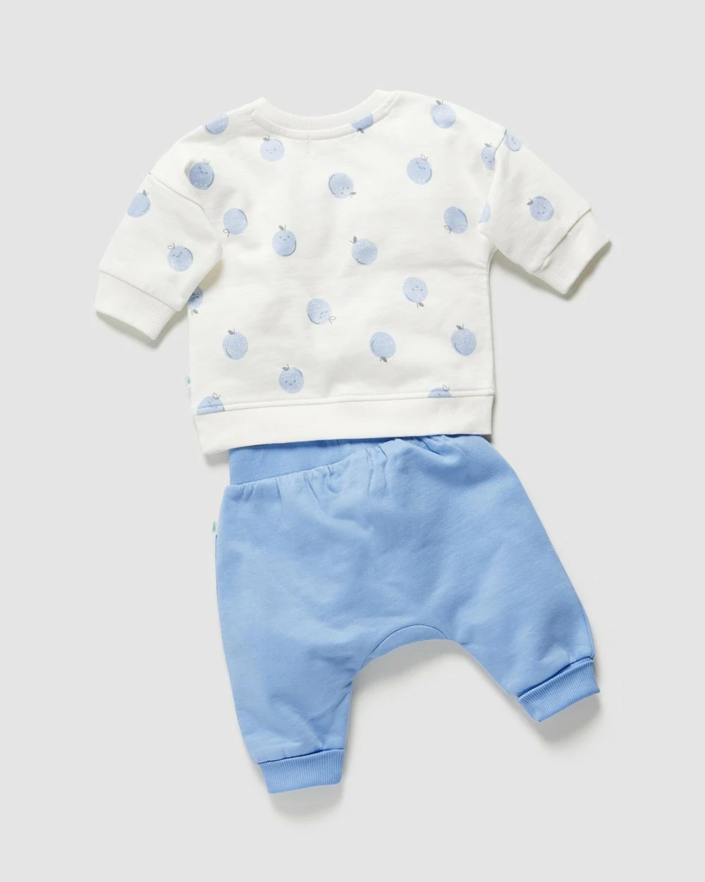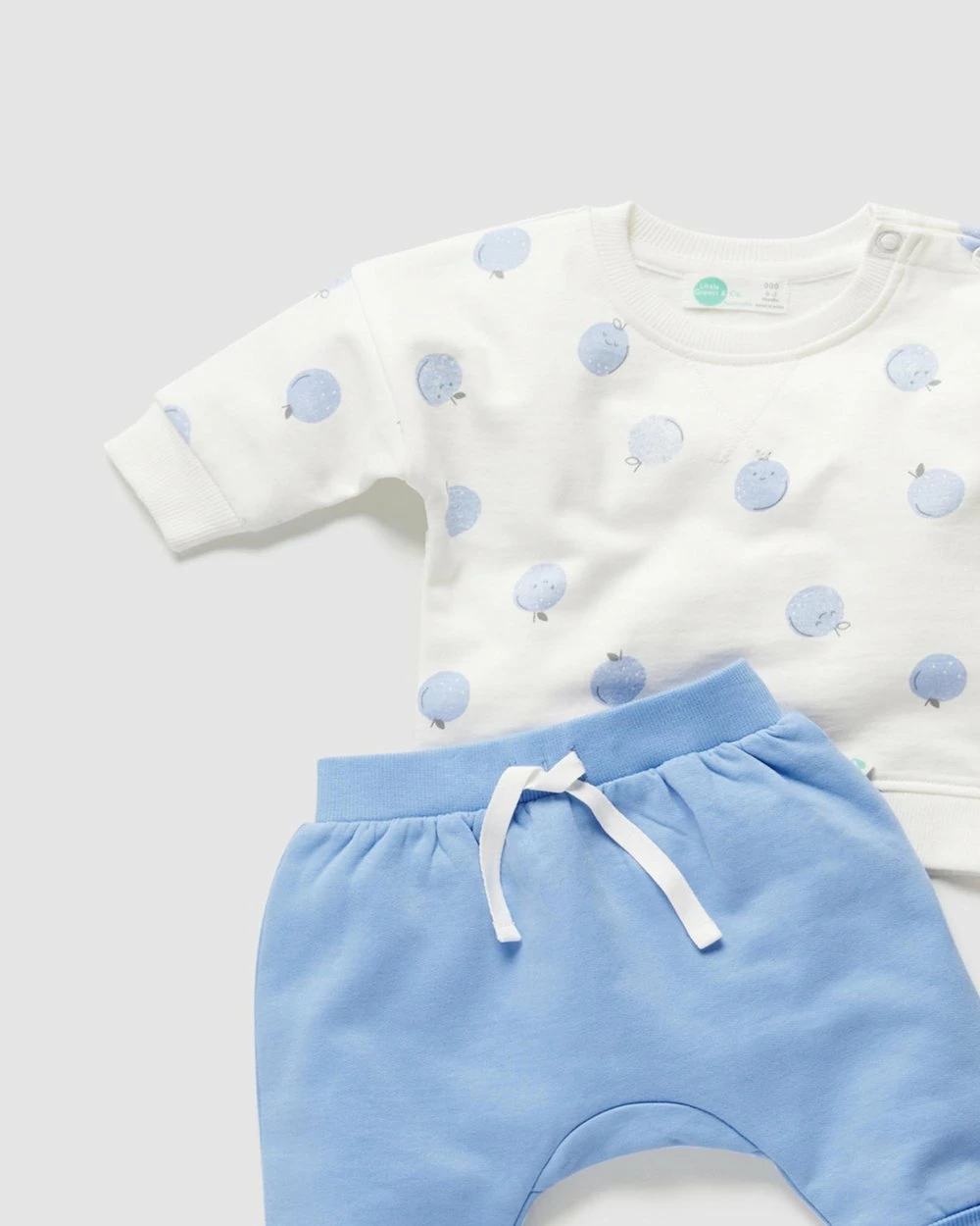 – Two-piece tracksuit set includes a printed jumper in our signature pear print and a solid green slouchy track pant with soft elastic waistband