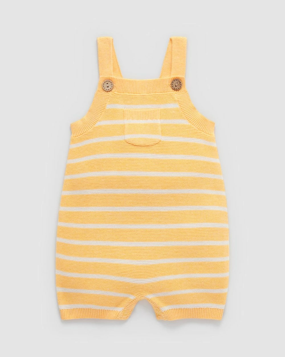 These Knitted Overalls from Purebaby are the sweetest gender-neutral piece for your little one! Designed in a bright pastel yellow and white stripe makes a sweet summer look. Made from the softest GOTS certified 100% Organic Cotton for a soft and gentle touch against their delicate skin. Layer overa rib tee for cooler weather.