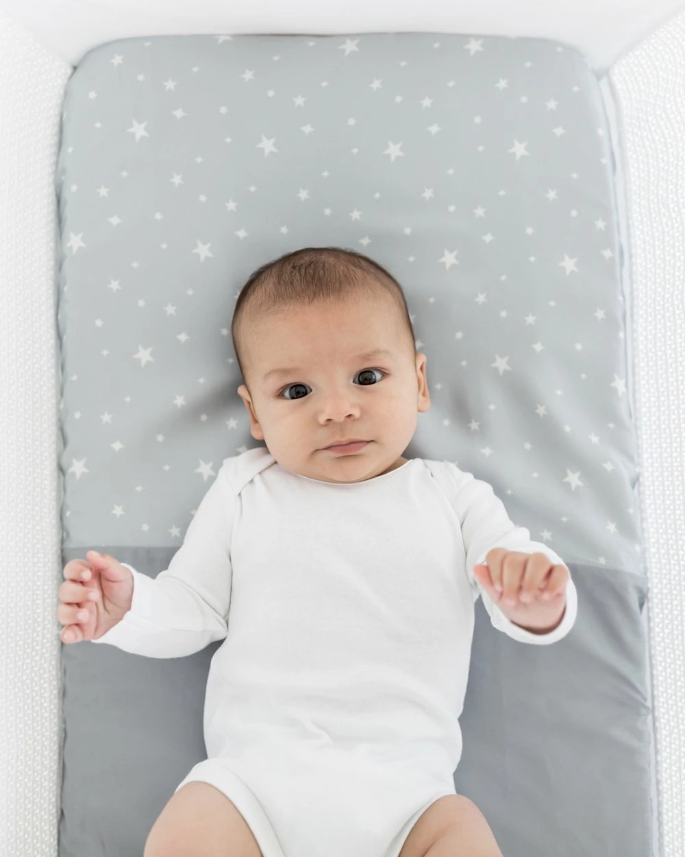 Fitted sheet; 80cm x 44cm x 12cm.Can be used on standard Bassinets and Bed Nests/Loungers.