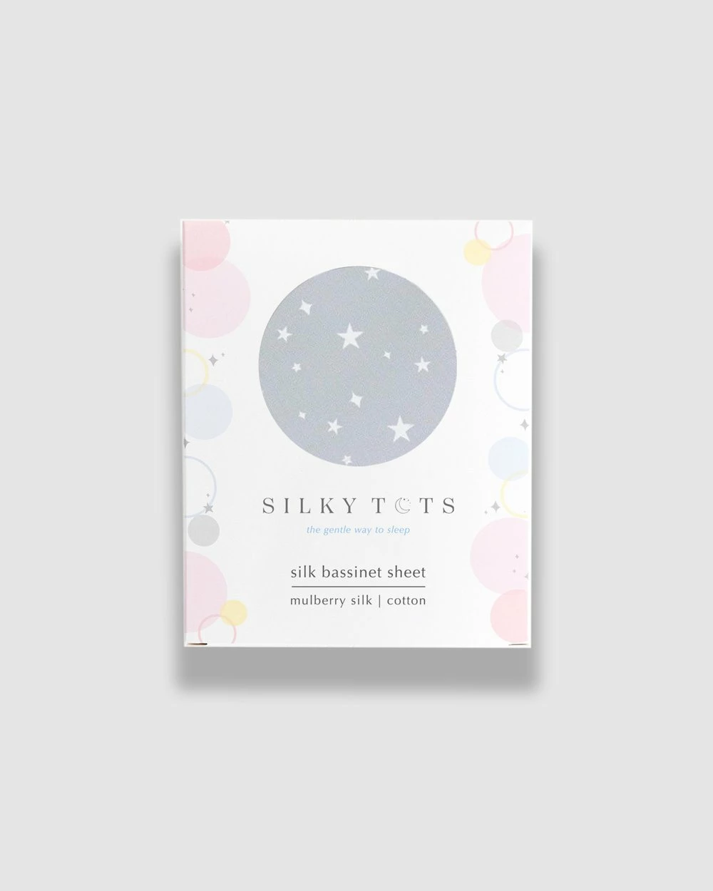 Silky Tots Silk Bed Nest/Bassinet Sheets create a silky soft barrier between baby’s head and the sheet below, reducing the friction that causes knotting, matting, and baby hair loss.