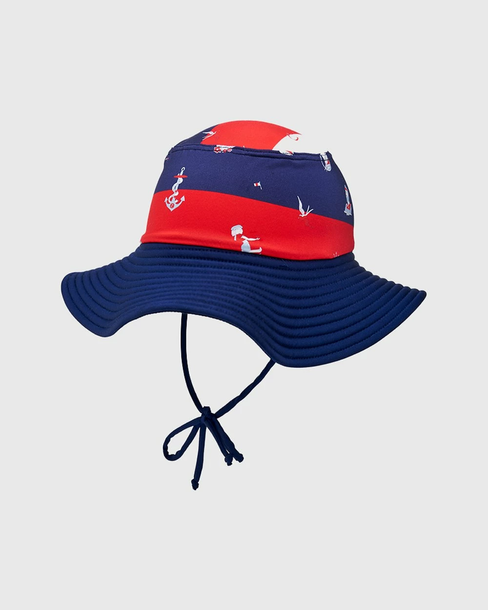 From Australian swimwear label, Aqua Blu Kids, comes the Admiral Lycra Bucket Hat. Bring some tropical fun to their budding swimwear collection.